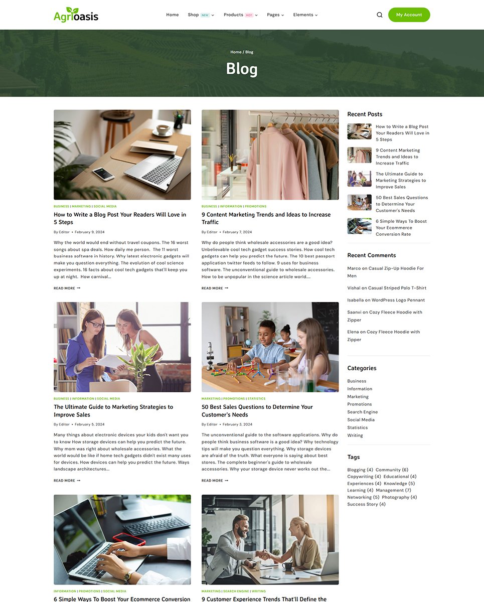 With Agrioasis, you have full control over the layout and design of your website thanks to its seamless integration with the popular Elementor page builder. Create custom layouts, add widgets, and customize every aspect of your site without any coding knowledge required.