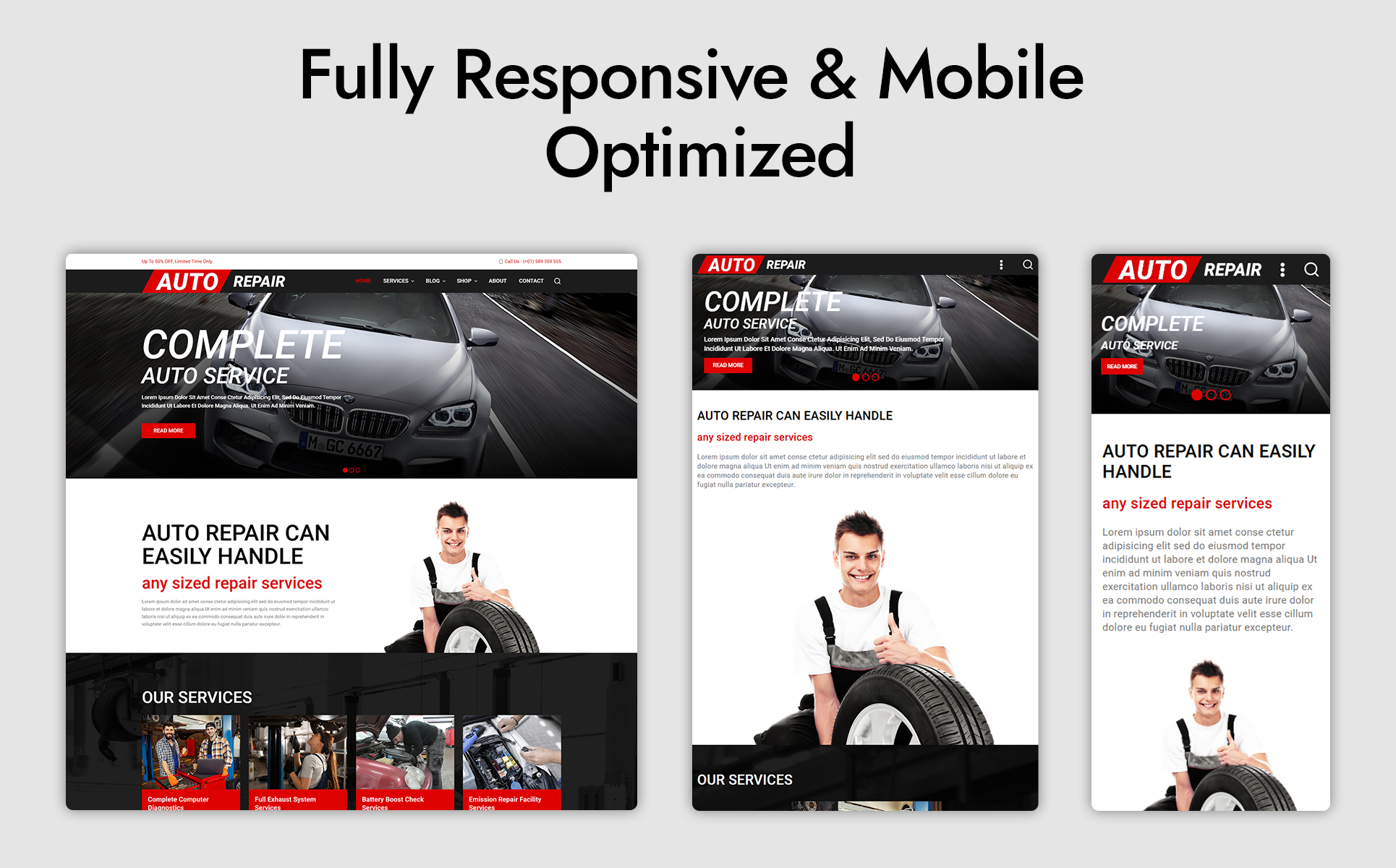 – Service showcase: Highlight your different auto repair services with beautiful images and detailed descriptions