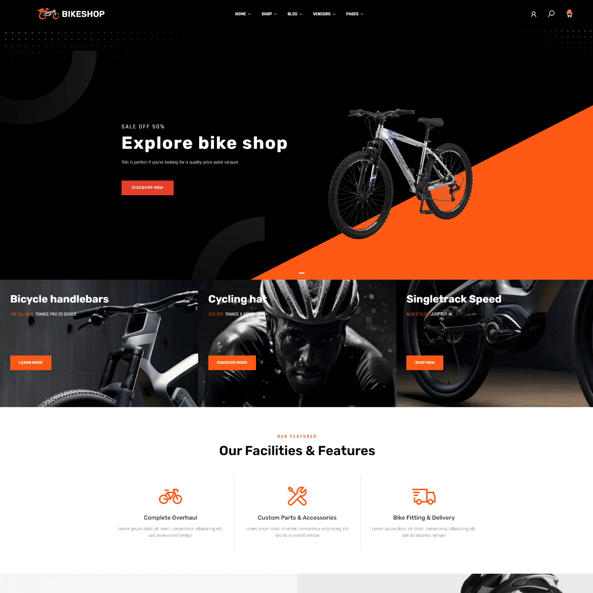 BikeShop features a sleek and modern design that is sure to impress your customers. The clean layout and bold typography make it easy for visitors to navigate your site and find exactly what they’re looking for. With customizable color options and multiple layout choices, you can easily tailor the theme to match your brand’s aesthetic.