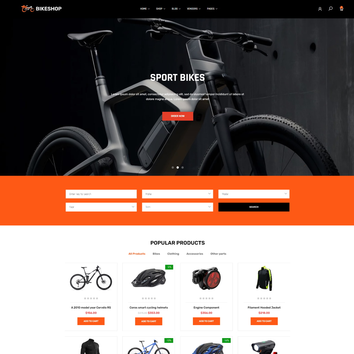 Create a stunning online store for bikes and motorbikes with BikeShop – Sport Bicycle & Motorbike Shop Elementor WordPress Theme. Easy customization, WooCo
