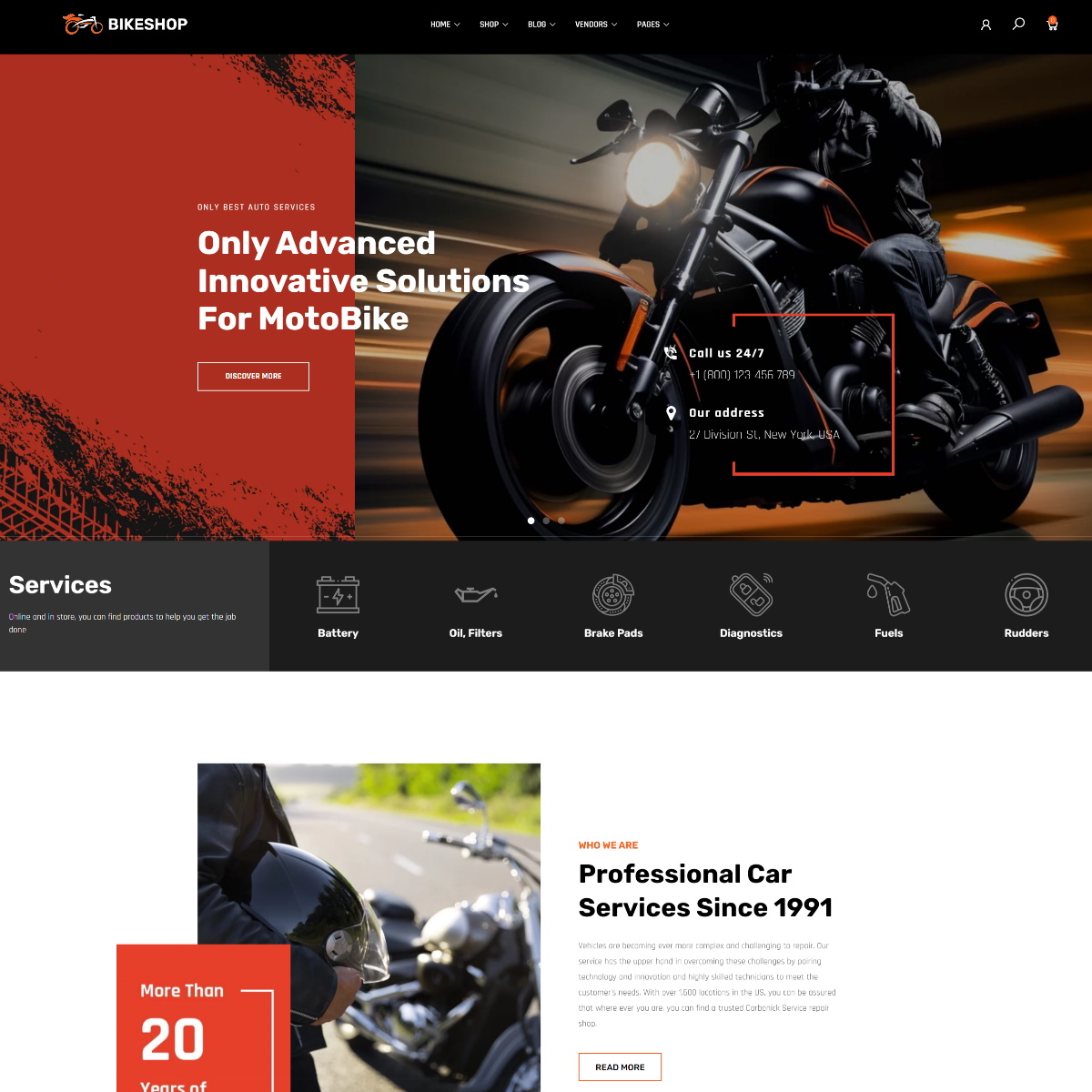 BikeShop is the perfect theme for anyone looking to create a professional and visually appealing online store for bikes and motorbikes. With its modern design, easy customization options, and built-in WooCommerce compatibility, you’ll have everything you need to showcase your products and services in style.