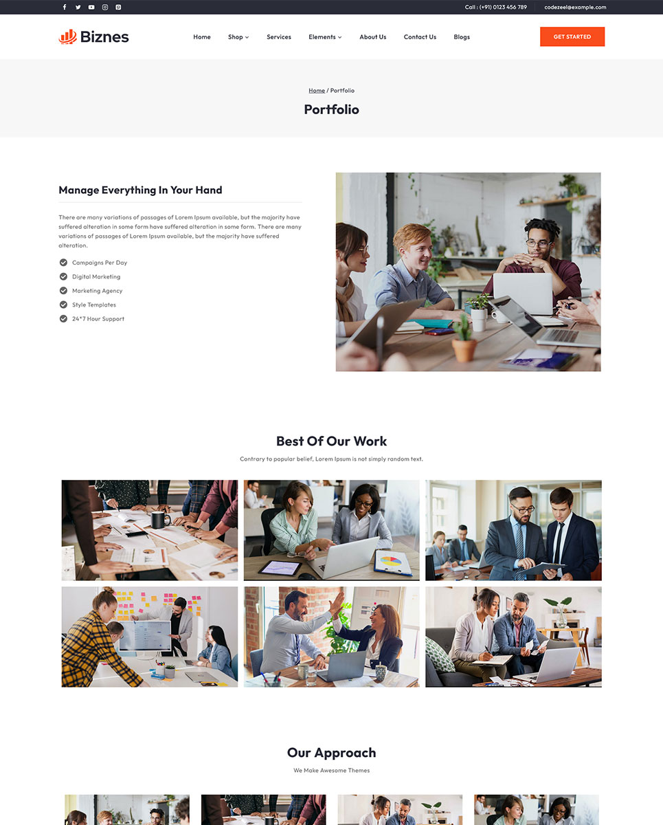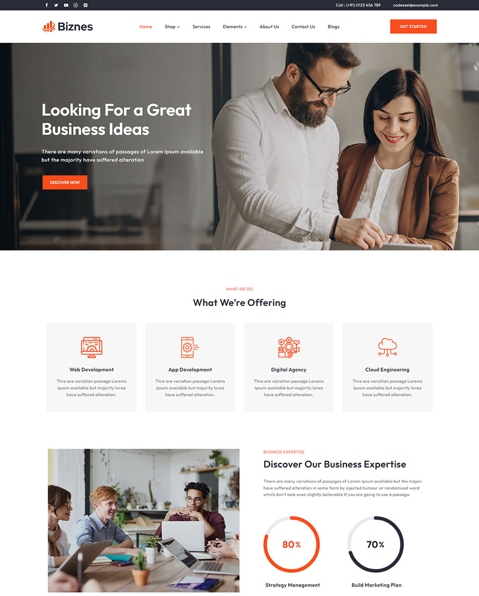 Create a professional and engaging website for your corporate business with Biznes – a responsive Elementor WordPress theme designed for businesses looking