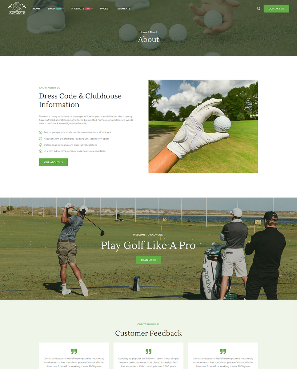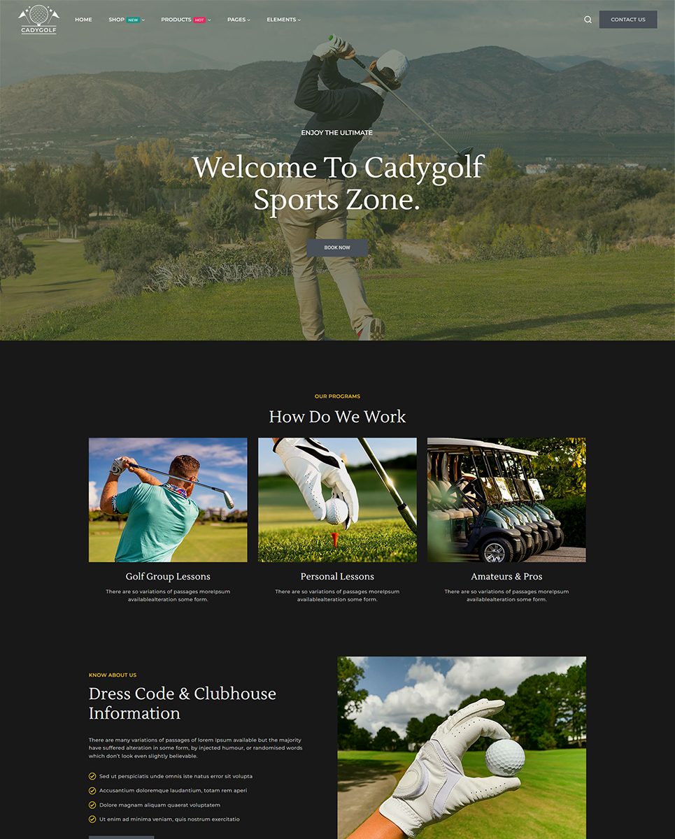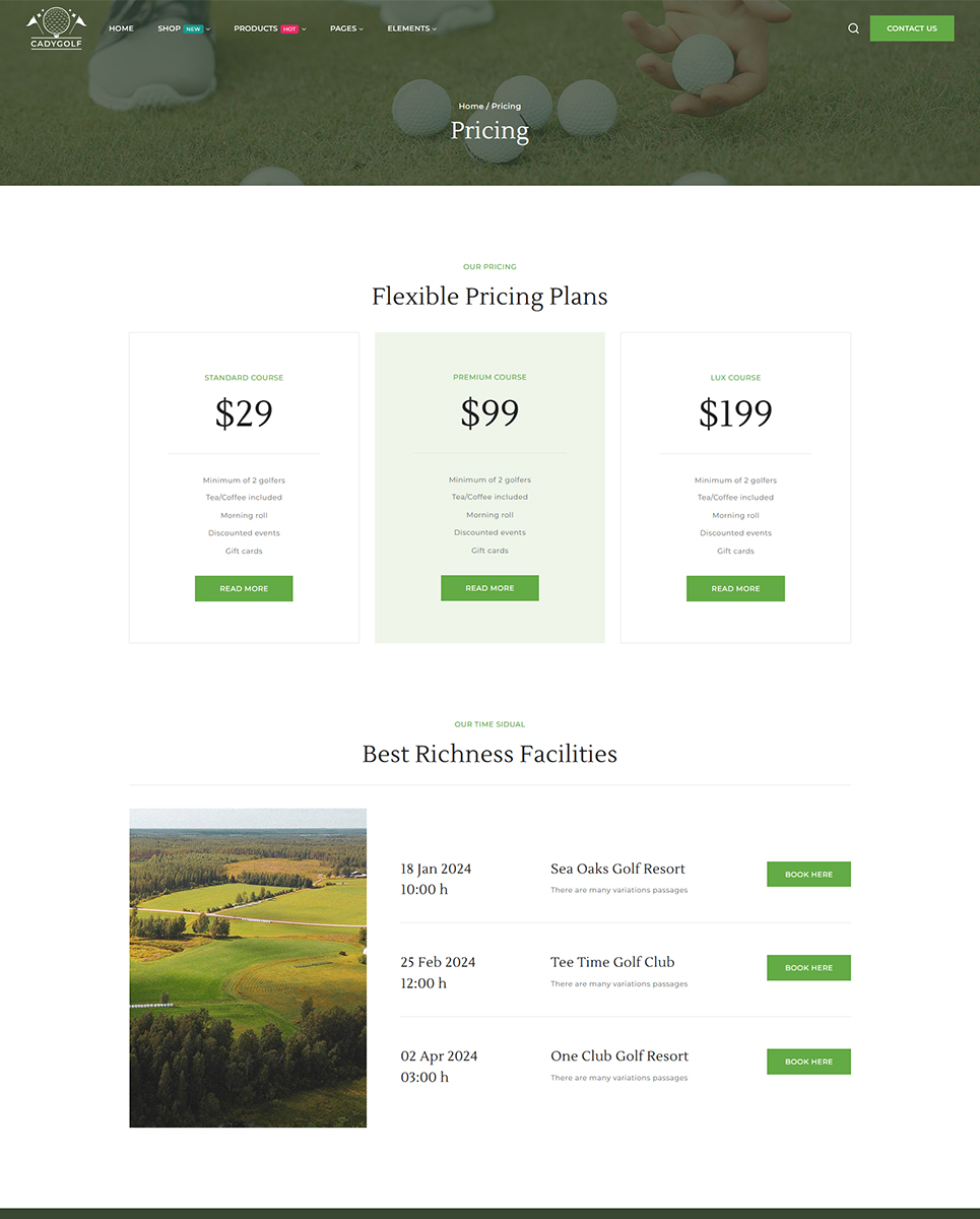 Introducing Cadygolf – Golf Course & Sports Club Elementor WordPress Responsive Theme, the perfect solution for creating a stunning website for golf courses, sports clubs, and any other sports-related business. With its sleek design and user-friendly interface, Cadygolf is the ideal choice for showcasing your facilities, services, and events in a professional manner.