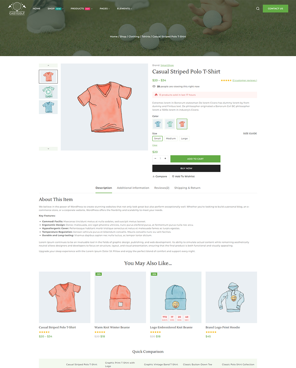 Don’t miss out on the opportunity to create a professional and engaging website for your sports business. Get Cadygolf – Golf Course & Sports Club Elementor WordPress Responsive Theme today and take your online presence to the next level.