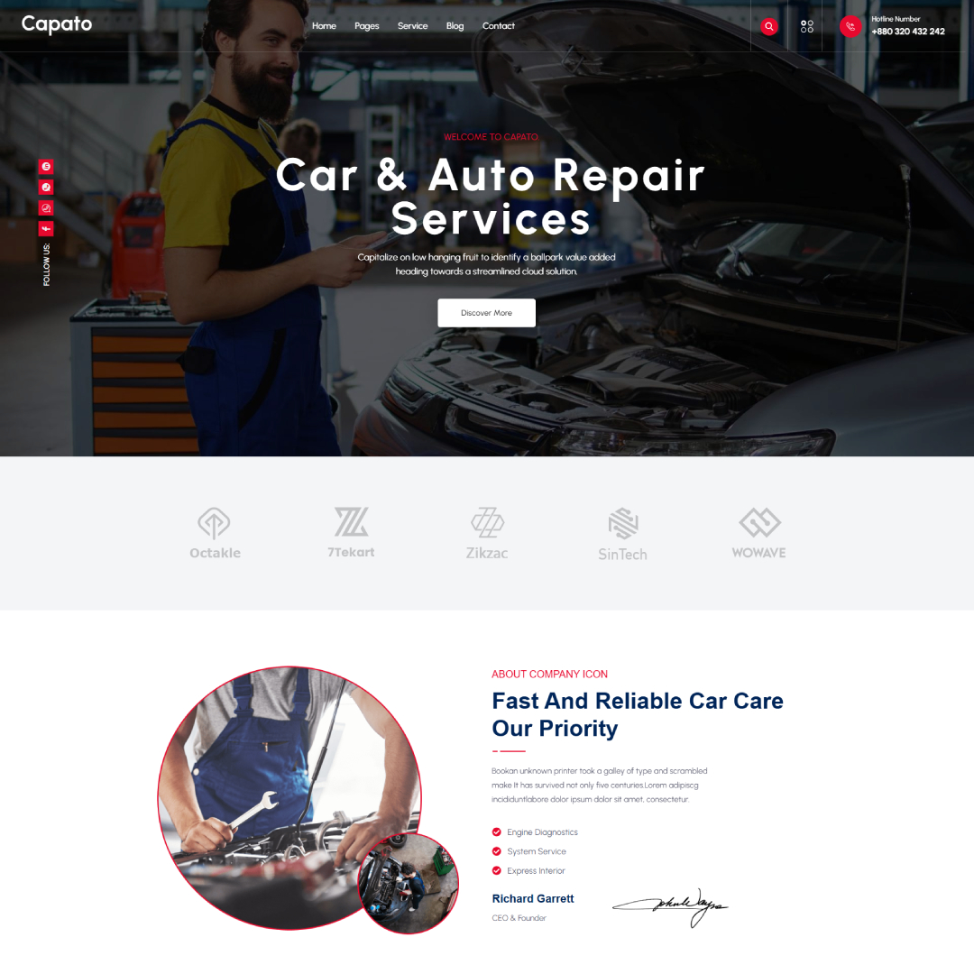 Introducing Capato – Car Repair & Auto Services WordPress Theme, the ultimate solution for automotive businesses looking to establish a professional online presence. This sleek and modern theme is designed specifically for car repair shops, auto mechanics, car washes, and other related businesses, making it the perfect choice for anyone in the automotive industry.