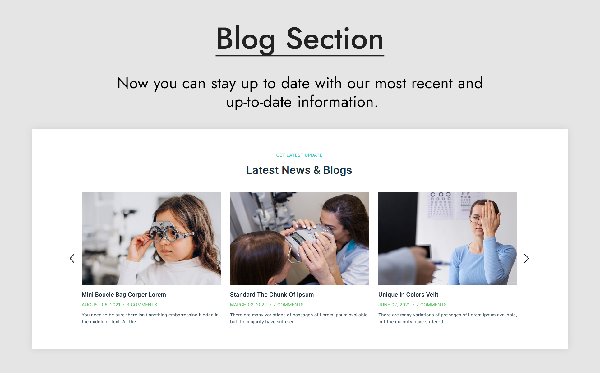 The theme also includes a blog section where you can share informative articles, eye care tips, and news about your practice. Engage with your audience and establish yourself as an expert in the field by regularly updating your blog with relevant and valuable content.