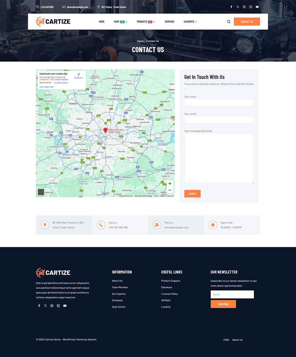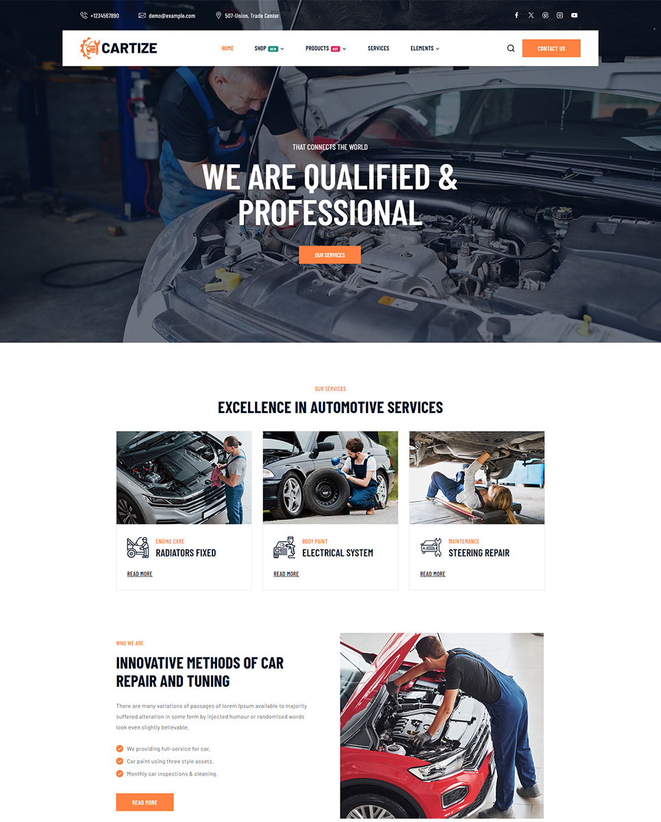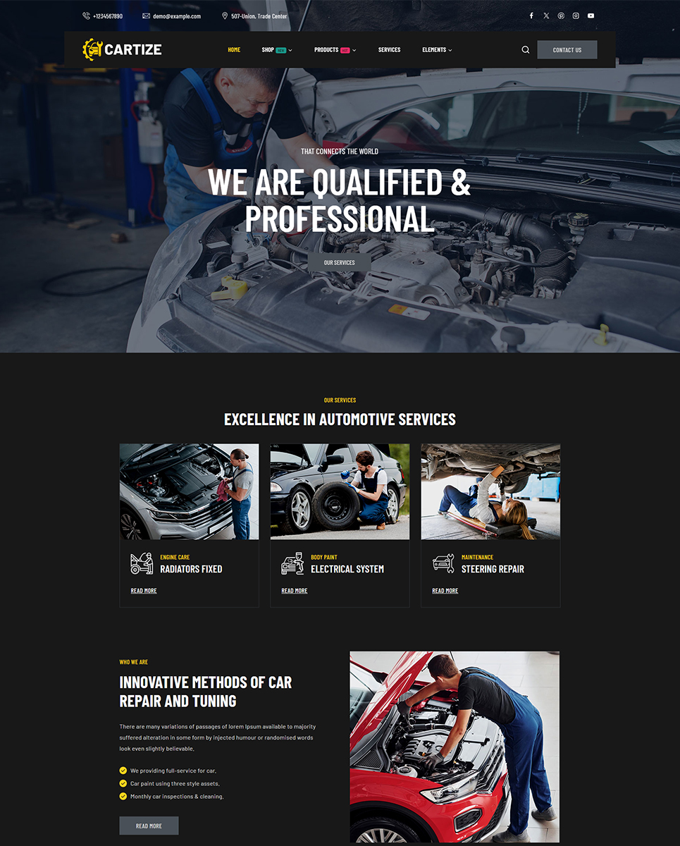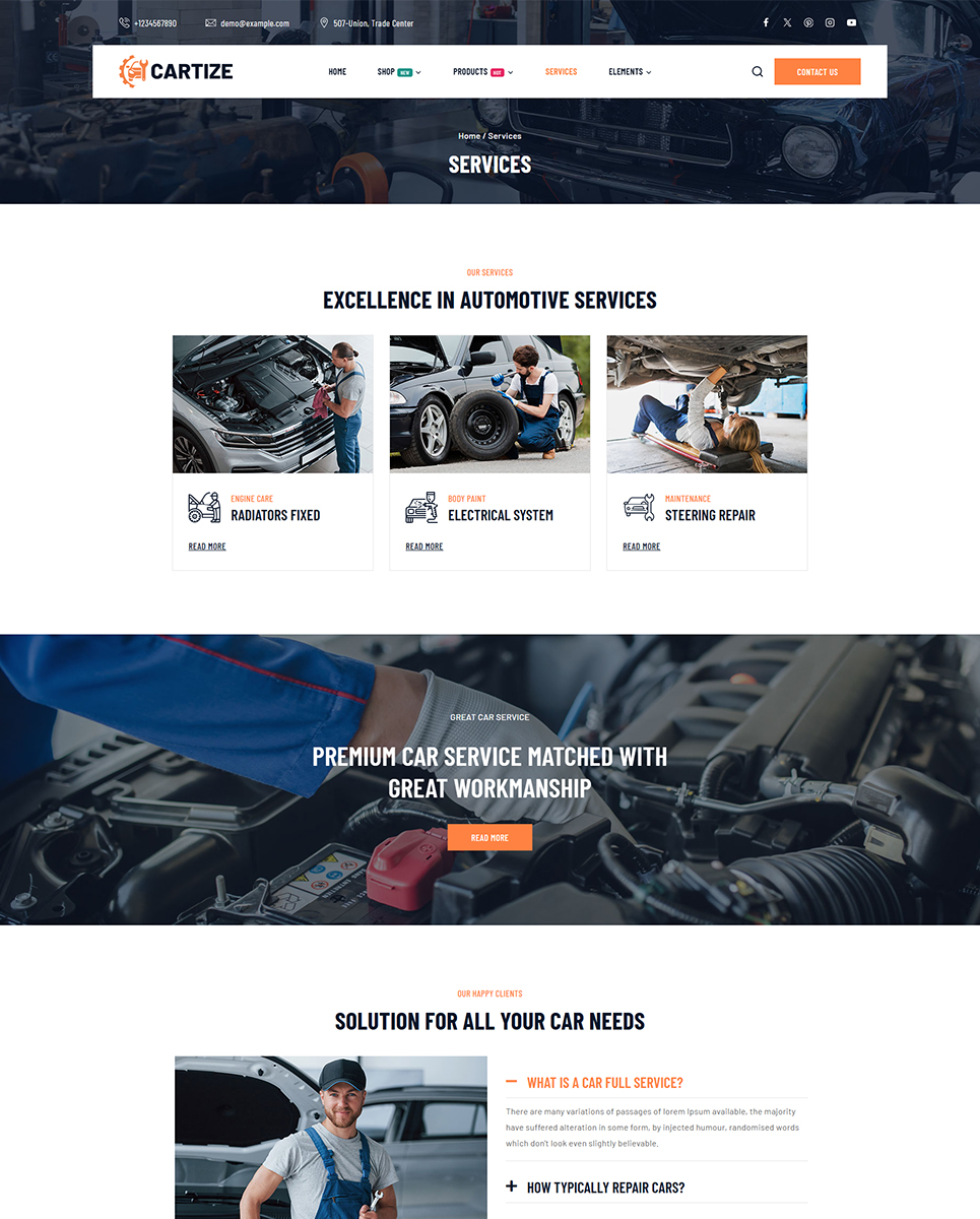 Create a professional website for your auto mechanic or car repair shop with Cartize – a responsive Elementor WordPress theme designed specifically for automoti