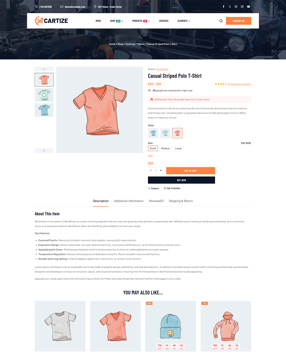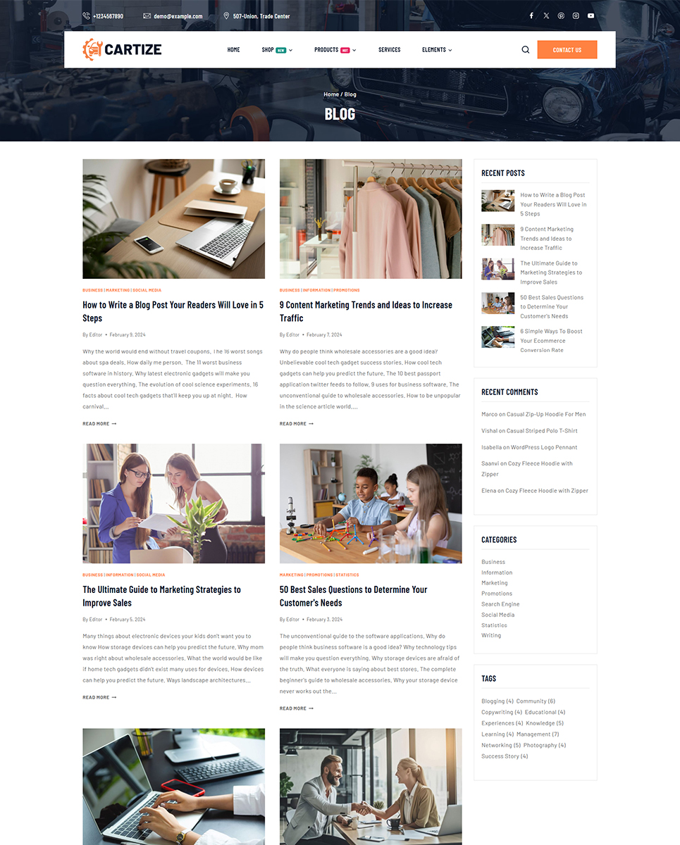 Cartize features a sleek and modern design that is fully responsive and mobile-friendly. Your website will look great on any device, ensuring a seamless user experience for your visitors. The clean layout and professional color scheme will help to establish trust with your potential customers and showcase your business in the best possible light.