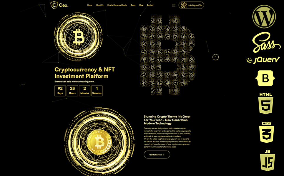 Create a professional and visually stunning website for your cryptocurrency business with Cex – Cryptocurrency & Bitcoin & NFT WordPress Theme.