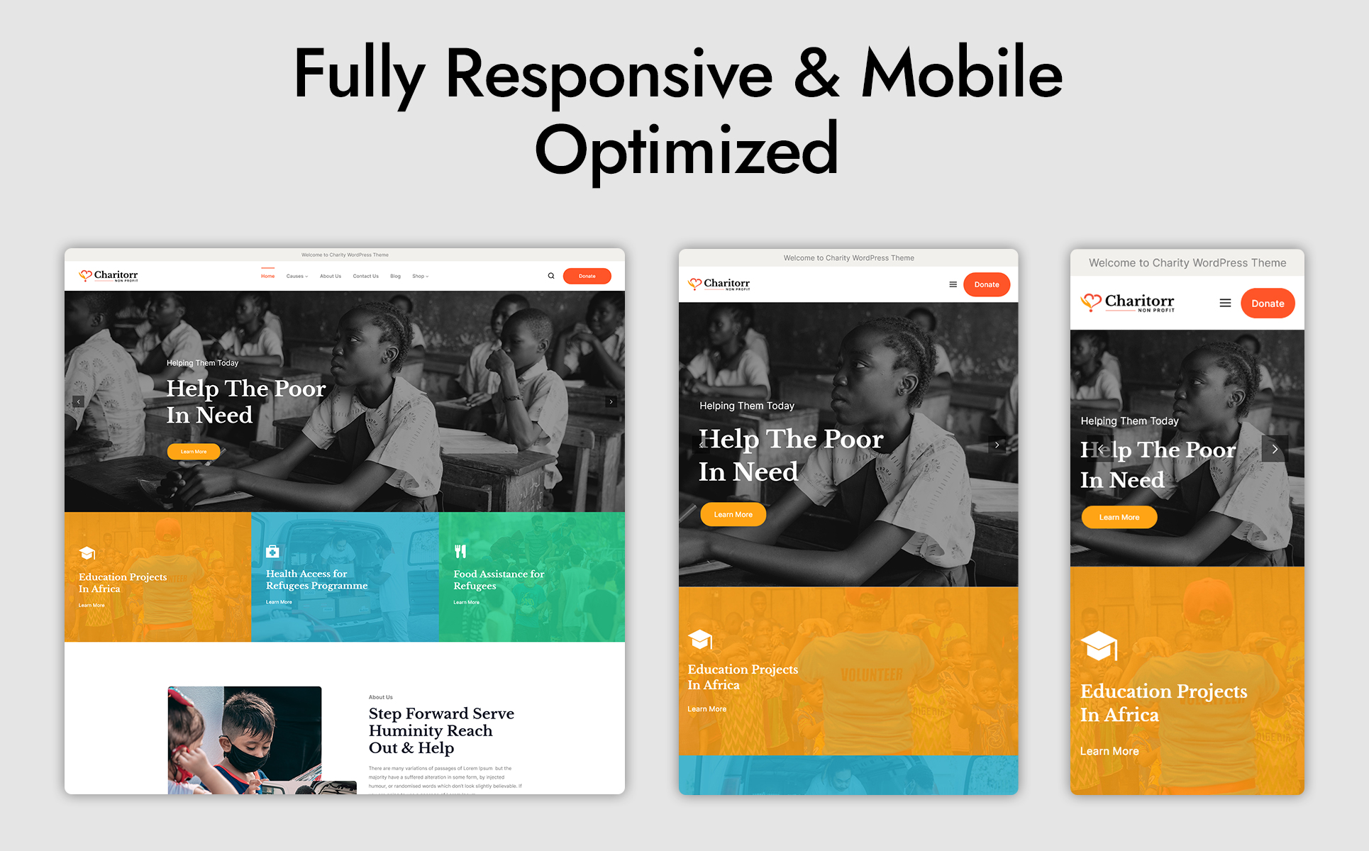 – Responsive design: Charitorr looks great on all devices, ensuring that your website is accessible to users on desktops, tablets, and mobile phones.
