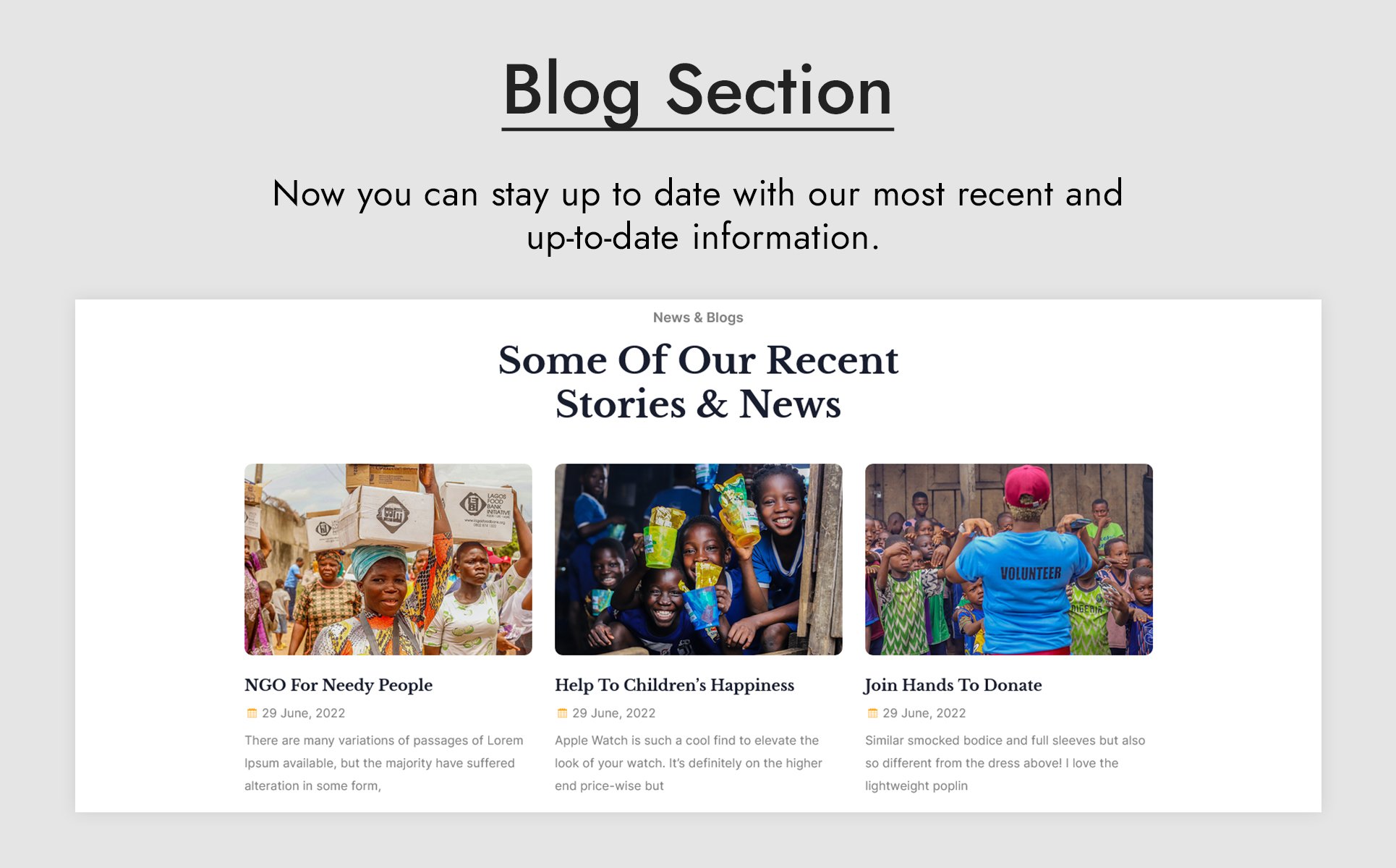 – Support and documentation: Our dedicated support team is here to help you with any questions or issues you may have while setting up and customizing your website. In addition, Charitorr comes with detailed documentation to guide you through the installation and setup process.