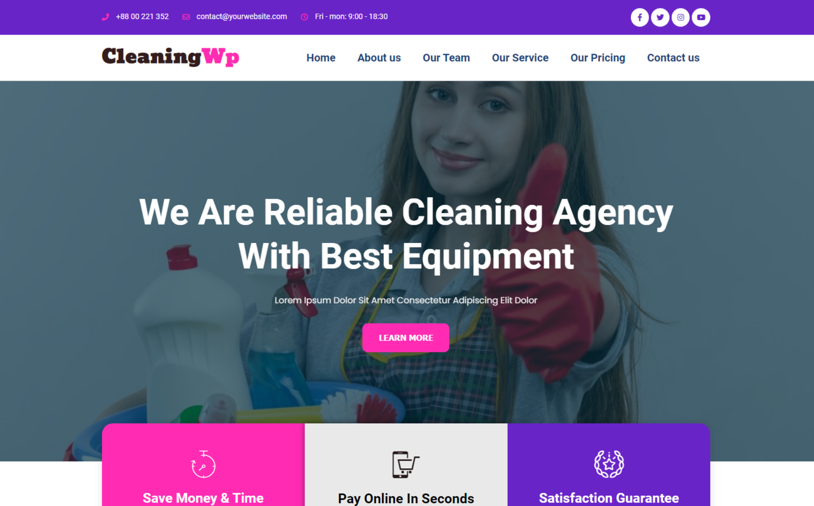 Get CleaningWp Cleaning And Cleaner Service WordPress Theme today and take your cleaning business to the next level!