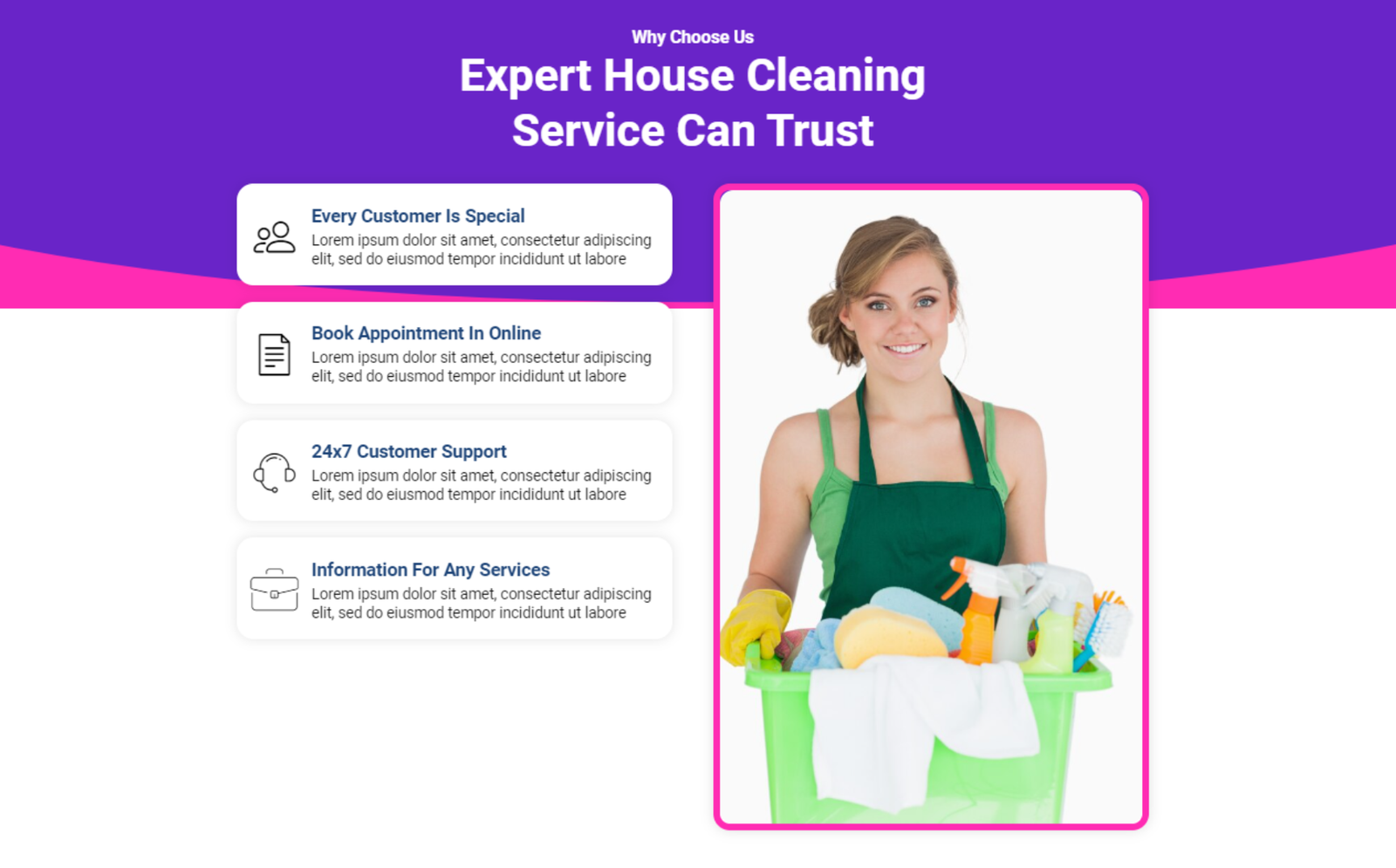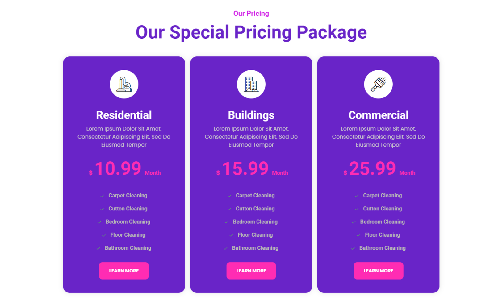 CleaningWp is packed with features to help you showcase your cleaning services and attract new customers. The service section allows you to highlight your offerings, while the team section lets you introduce your staff members. You can also display customer testimonials, pricing tables, and more to build trust with your audience.