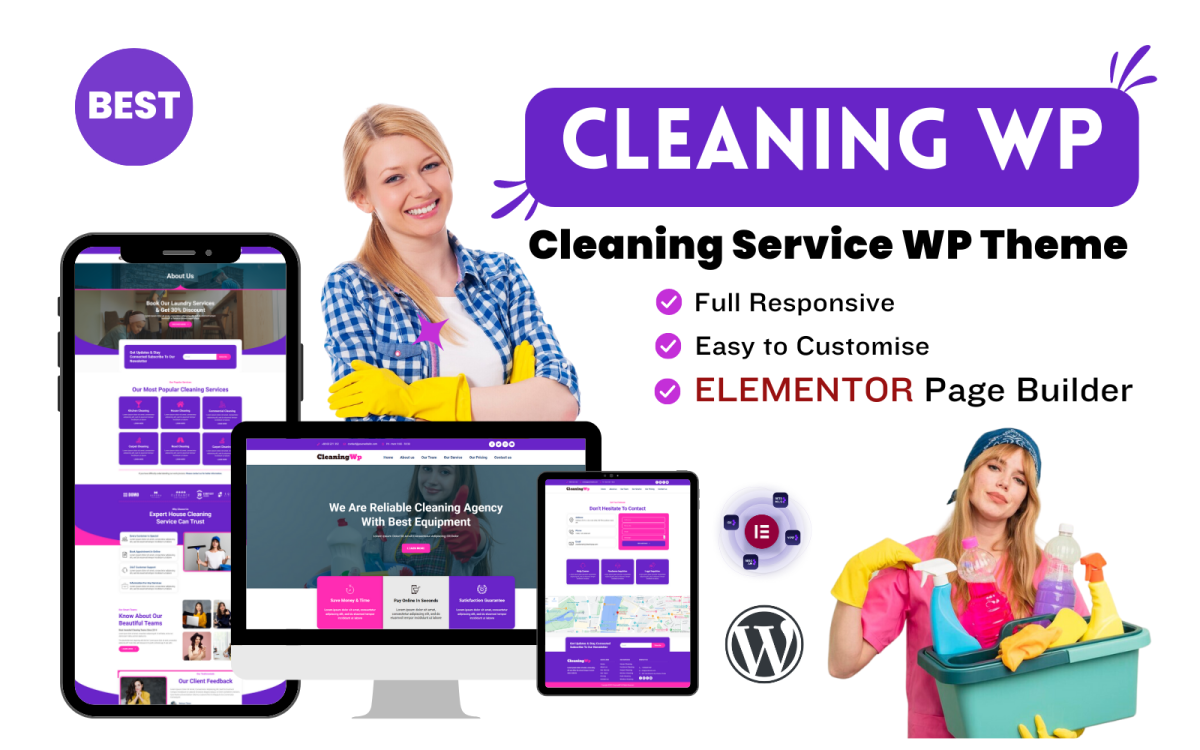 Create a professional website for your cleaning business with CleaningWp Cleaning And Cleaner Service Wordpress Theme. Showcase your services, attract cust
