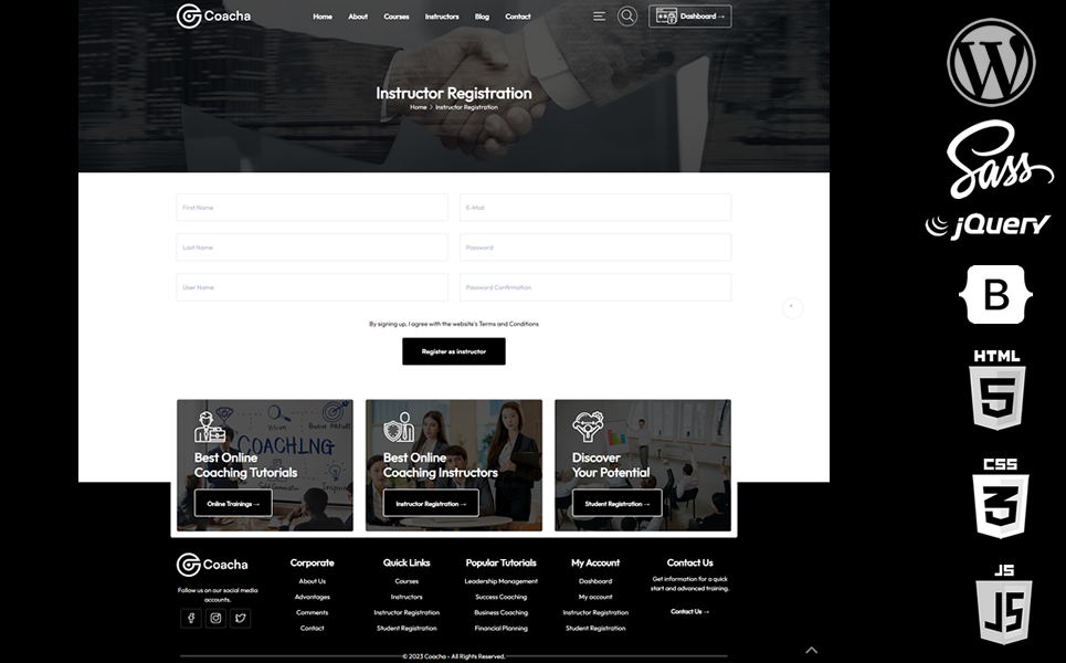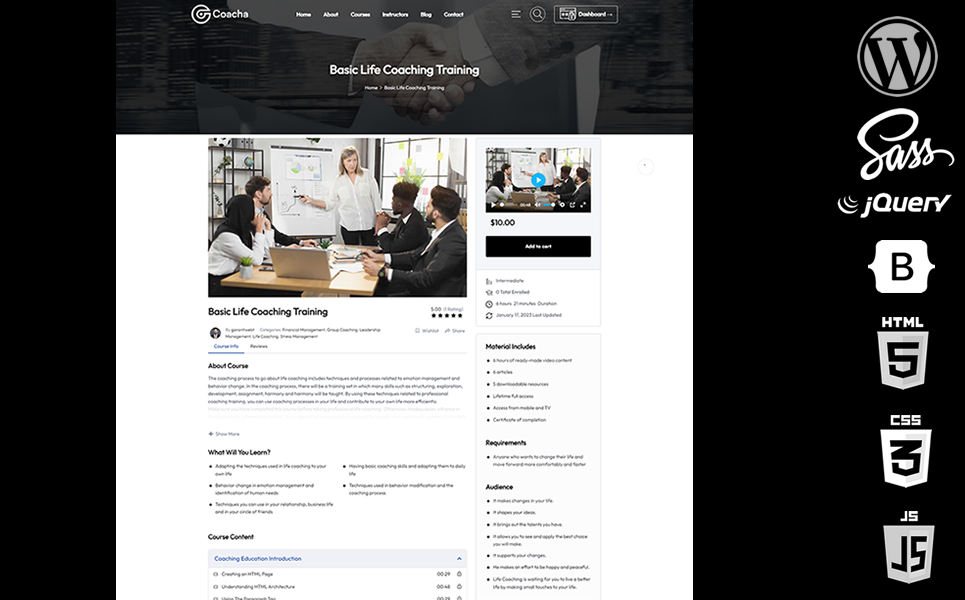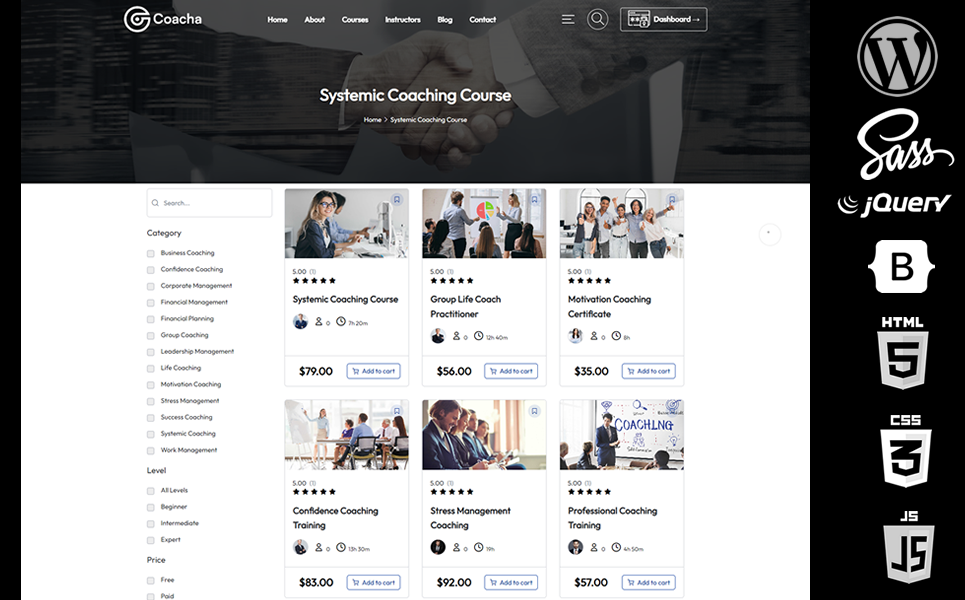 Introducing Coacha – Coaching & Online Courses WooCommerce WordPress Theme, the perfect solution for coaches, consultants, and educators looking to create a professional and engaging online presence. With its sleek design and powerful features, Coacha makes it easy to showcase your services, courses, and expertise in a way that will captivate your audience and drive conversions.