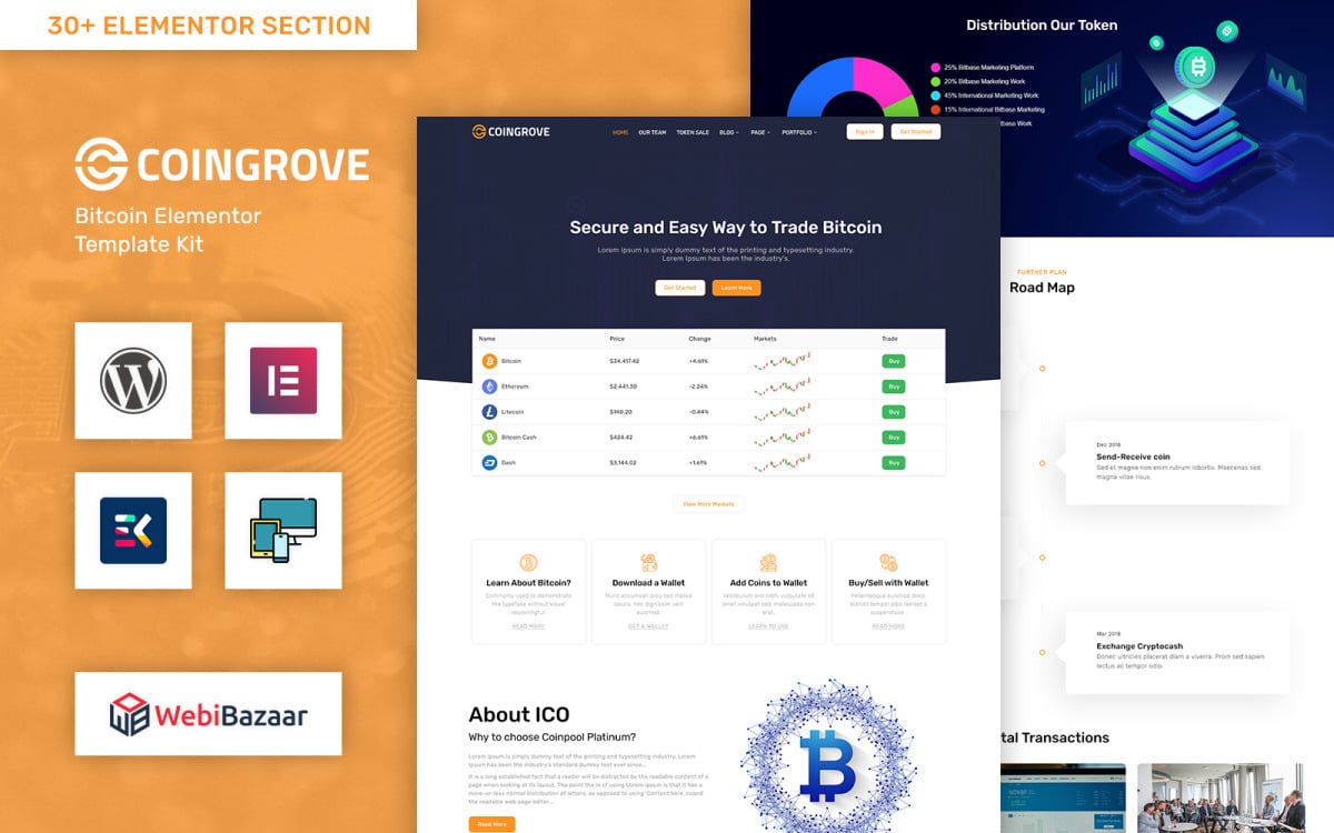 Create a professional website for your Bitcoin or cryptocurrency business with Coingrove – Bitcoin & Cryptocurrency Elementor WordPress Theme. Stand out fr