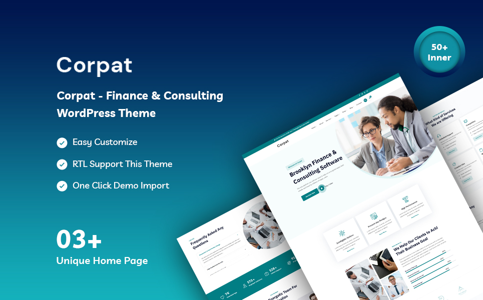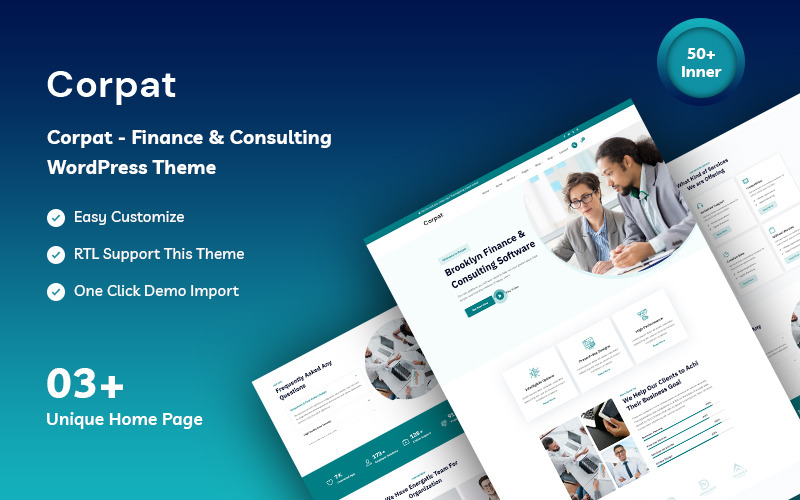 Introducing Corpat – Finance & Consulting WordPress Theme, the perfect solution for financial institutions, consulting firms, and business advisors looking to establish a professional online presence. With its sleek design, powerful features, and user-friendly interface, Corpat is sure to impress both clients and visitors alike.