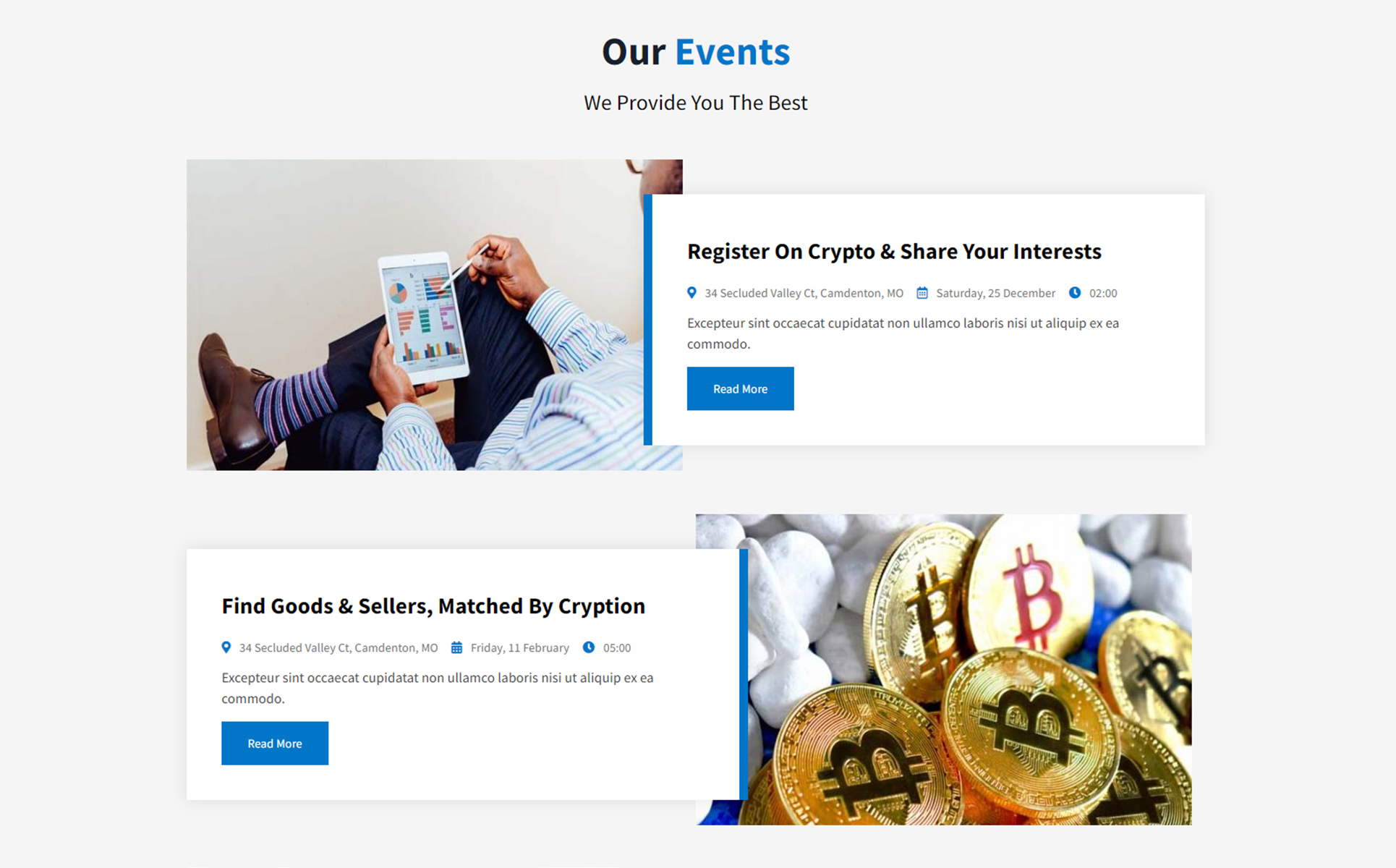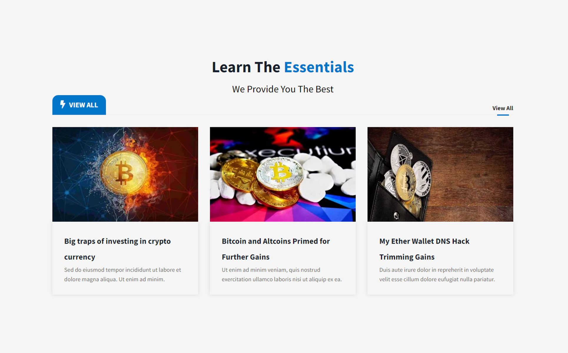 With its clean and modern design, our Crypto Currency WordPress Theme is perfect for any cryptocurrency-related website. Whether you’re a cryptocurrency trader, blogger, or business owner, this theme has everything you need to create a professional and engaging online presence. Take advantage of the powerful features and customization options to make your website stand out from the crowd.
