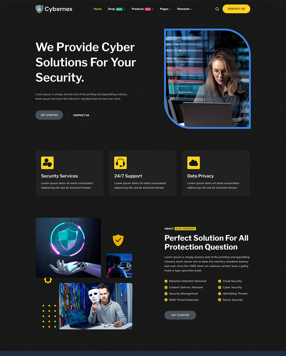 Introducing Cybernex – Cyber Security Solutions Elementor WordPress Responsive Theme, the ultimate solution for protecting your online presence. With its sleek design and powerful features, Cybernex is the perfect choice for cybersecurity professionals, IT companies, and anyone looking to safeguard their digital assets.