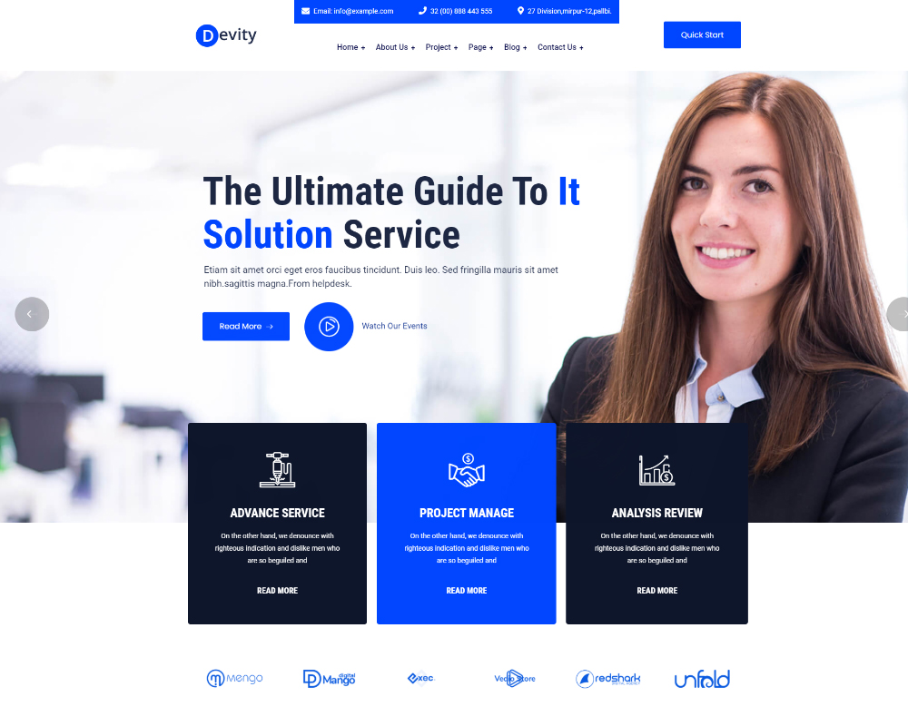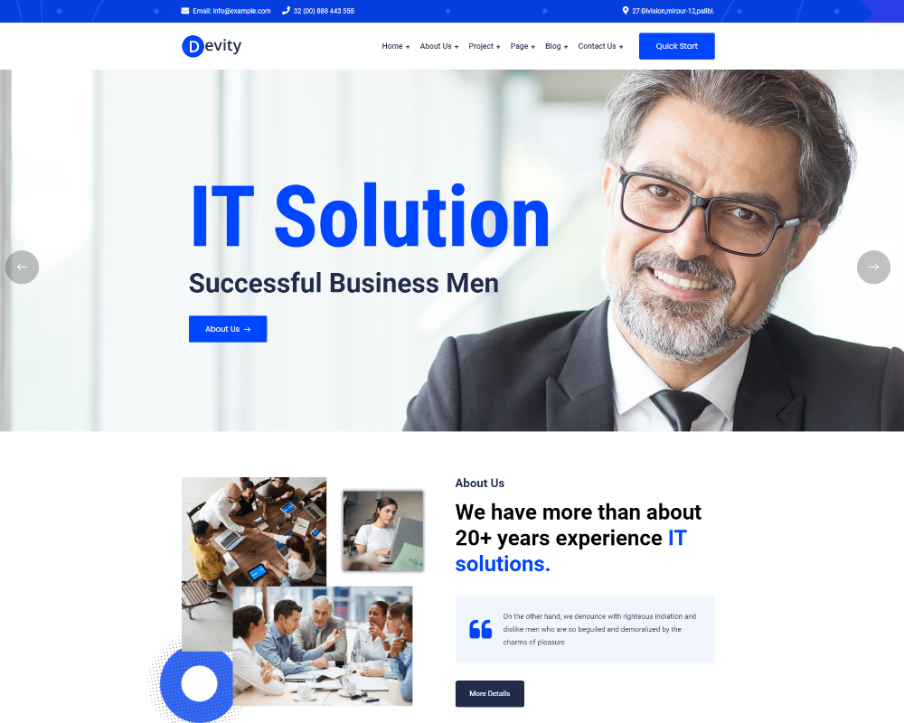 Elevate your IT solutions business with Devity – a modern and responsive WordPress theme designed to help you showcase your services and attract new client