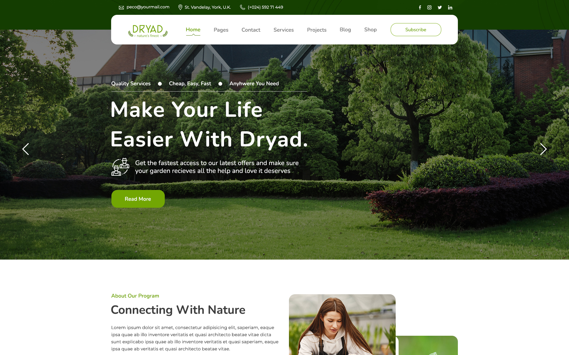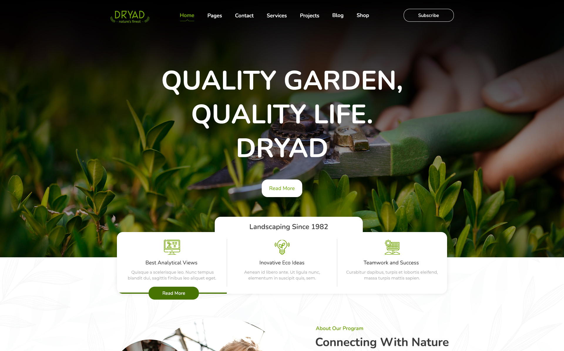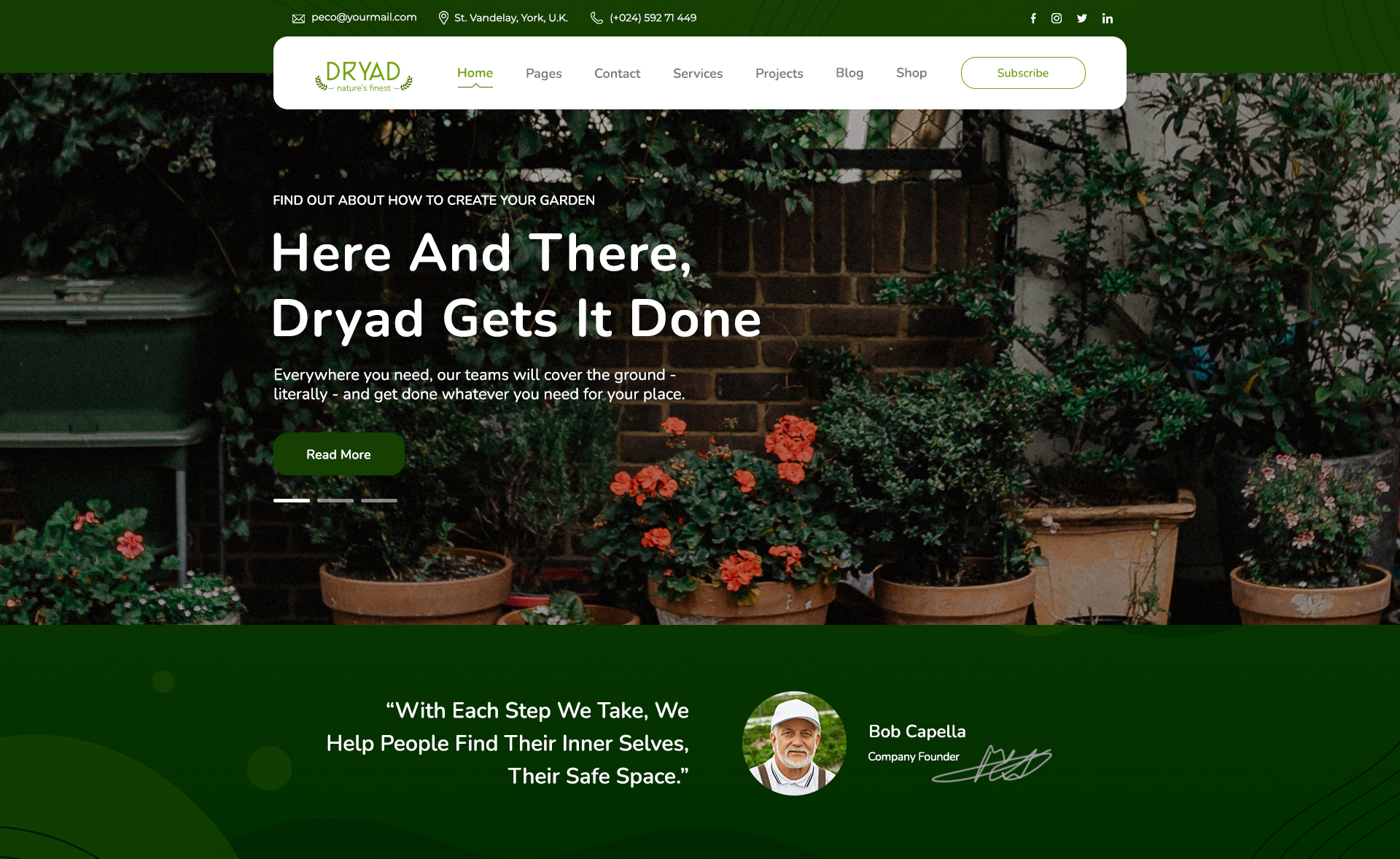 Welcome to Dryad, the perfect WordPress theme for gardening companies and landscaping businesses. With its clean and modern design, Dryad will help you showcase your services, projects, and team in a professional and visually appealing way.