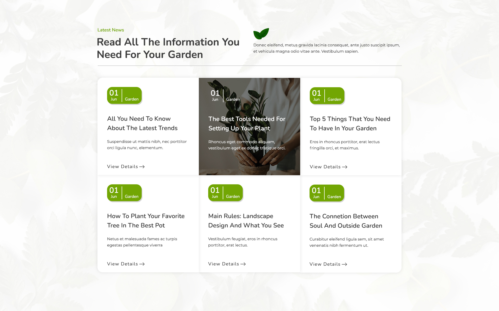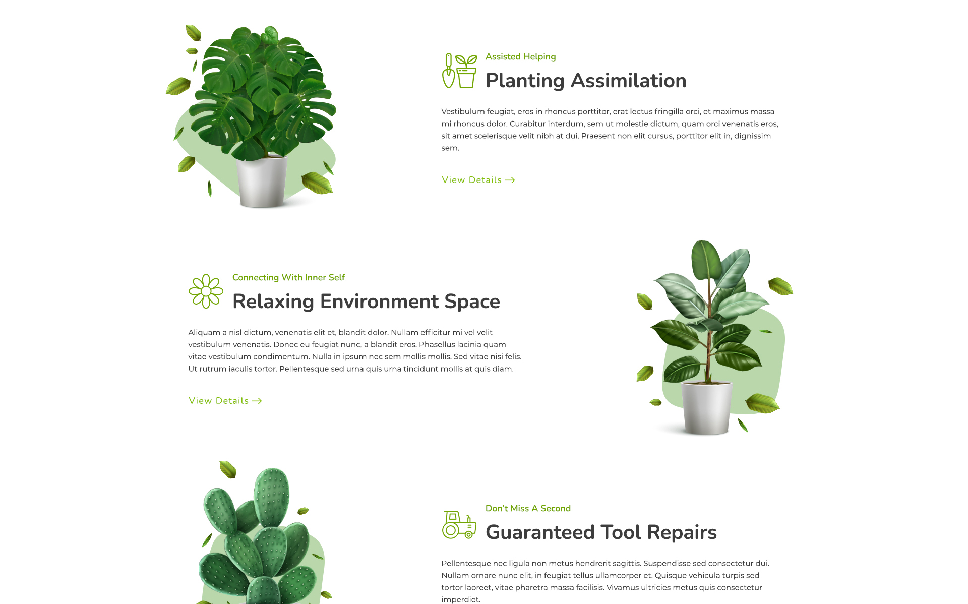 The homepage features a full-width slider where you can showcase your best projects and services. Below the slider, you can highlight your services, team members, and customer testimonials. The blog section allows you to share gardening tips, project updates, and company news with your audience.
