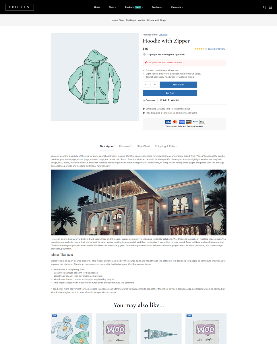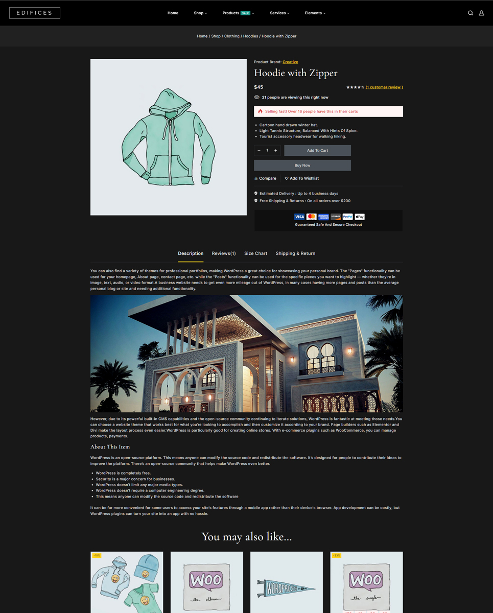 In addition to its customizable features, Edifices offers advanced functionality to help you manage your architecture or real estate website effectively. The theme includes integration with popular plugins like WooCommerce, allowing you to set up an online store to sell architectural services or real estate properties directly from your website. Edifices also includes a booking system, making it easy for clients to schedule appointments or viewings with you.