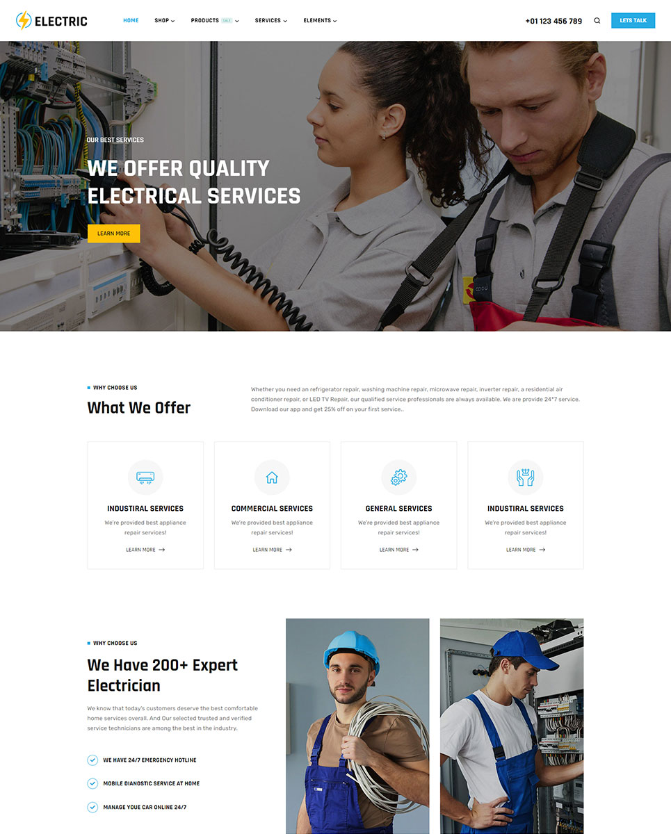 Power up your electricity services business with Electric – Electricity Services WordPress Elementor Theme. Customize your design and showcase your service