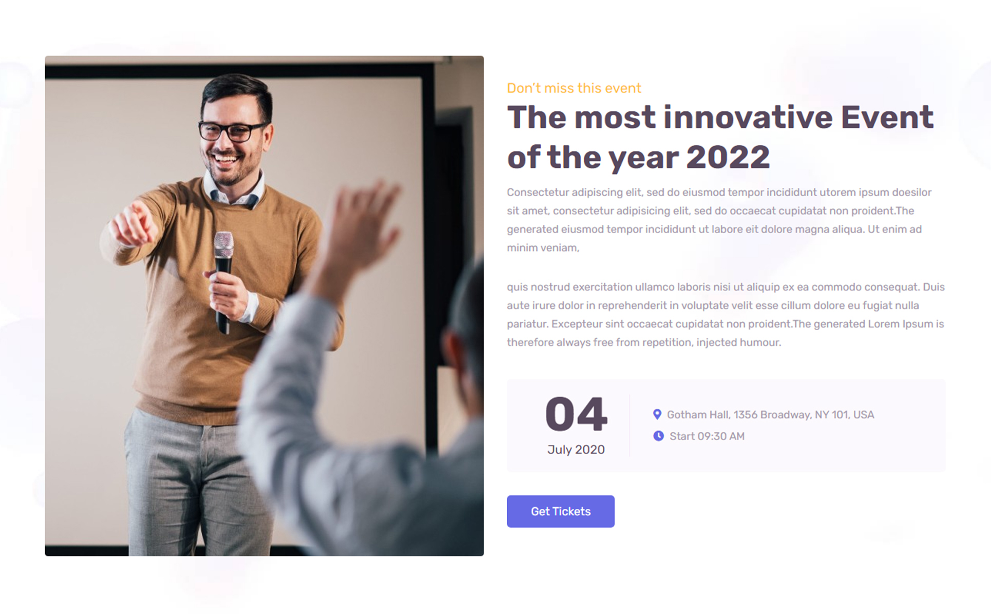 Our Event Management WordPress Theme is easy to customize and comes with a user-friendly interface that makes it simple to manage your website. The drag-and-drop page builder allows you to create custom layouts without any coding knowledge, while the one-click demo import feature lets you get started quickly with pre-designed templates.