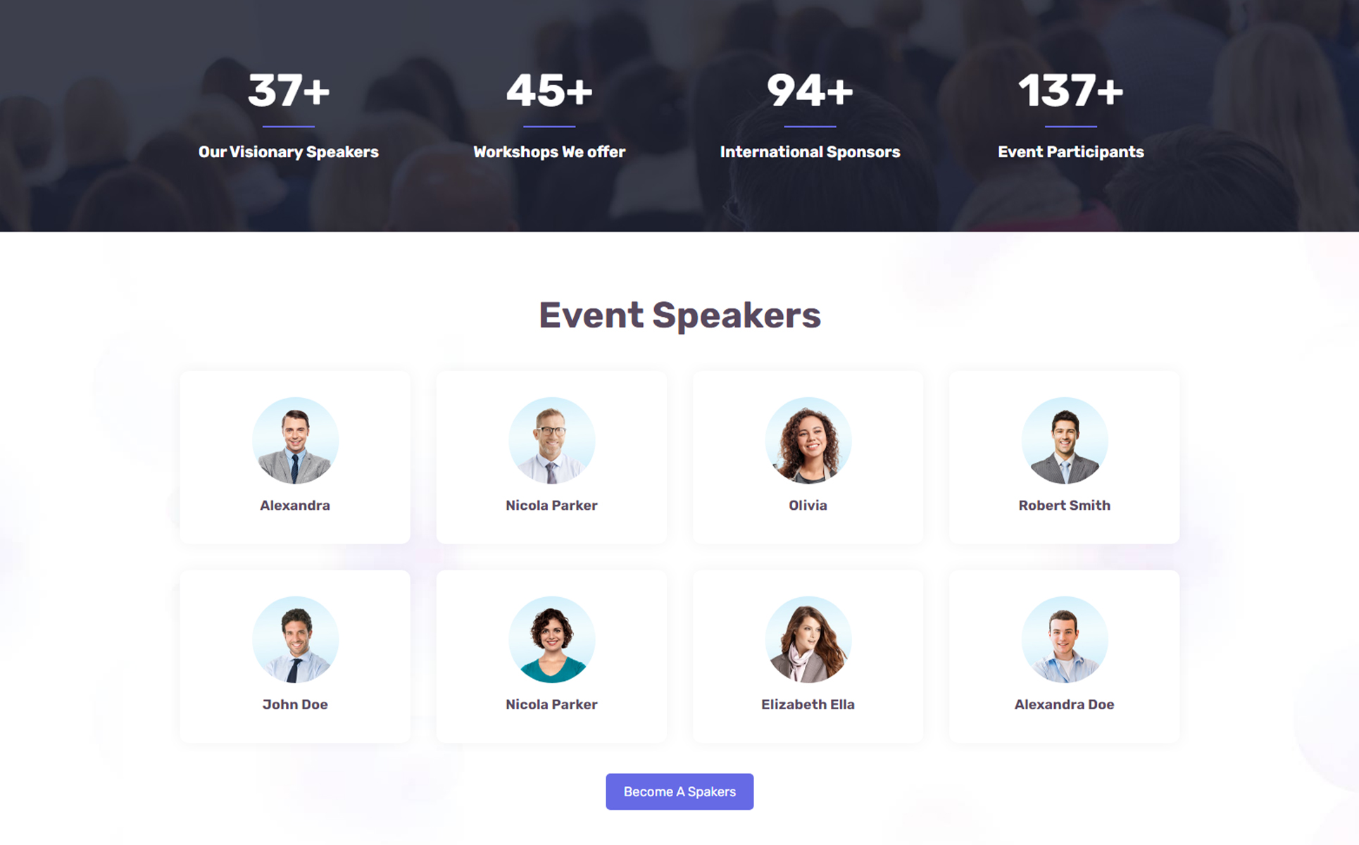 With our Event Management WordPress Theme, you can also showcase speakers, sponsors, and exhibitors, making it easy for attendees to learn more about the event and its participants. The integrated social sharing buttons make it simple for visitors to spread the word about your event on their favorite social media platforms.