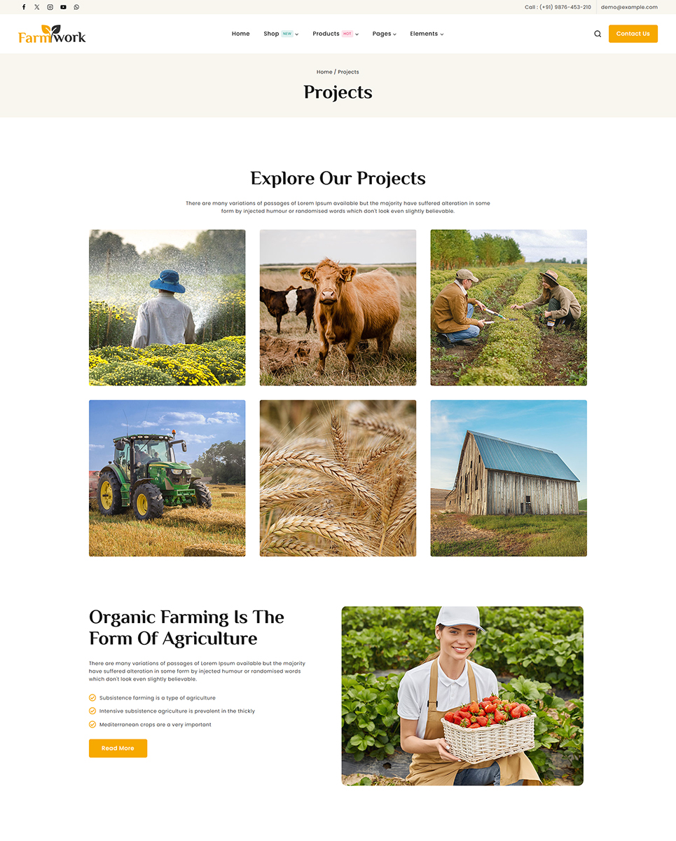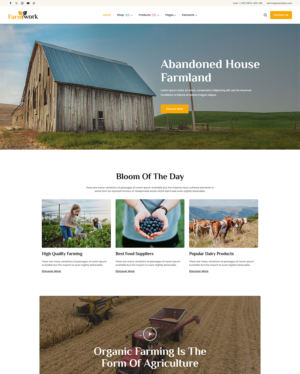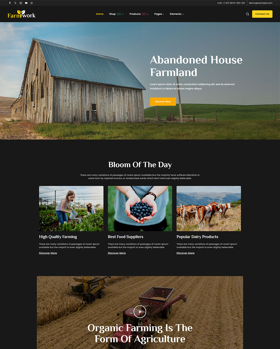 The Farmwork theme boasts a modern and clean design that is fully responsive and mobile-friendly. Your website will look great on any device, from desktop computers to tablets and smartphones, ensuring that your visitors have a seamless browsing experience no matter how they access your site.