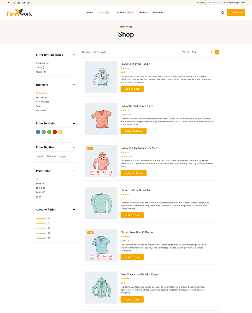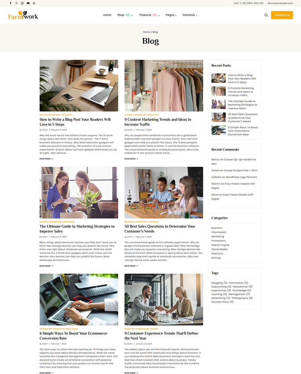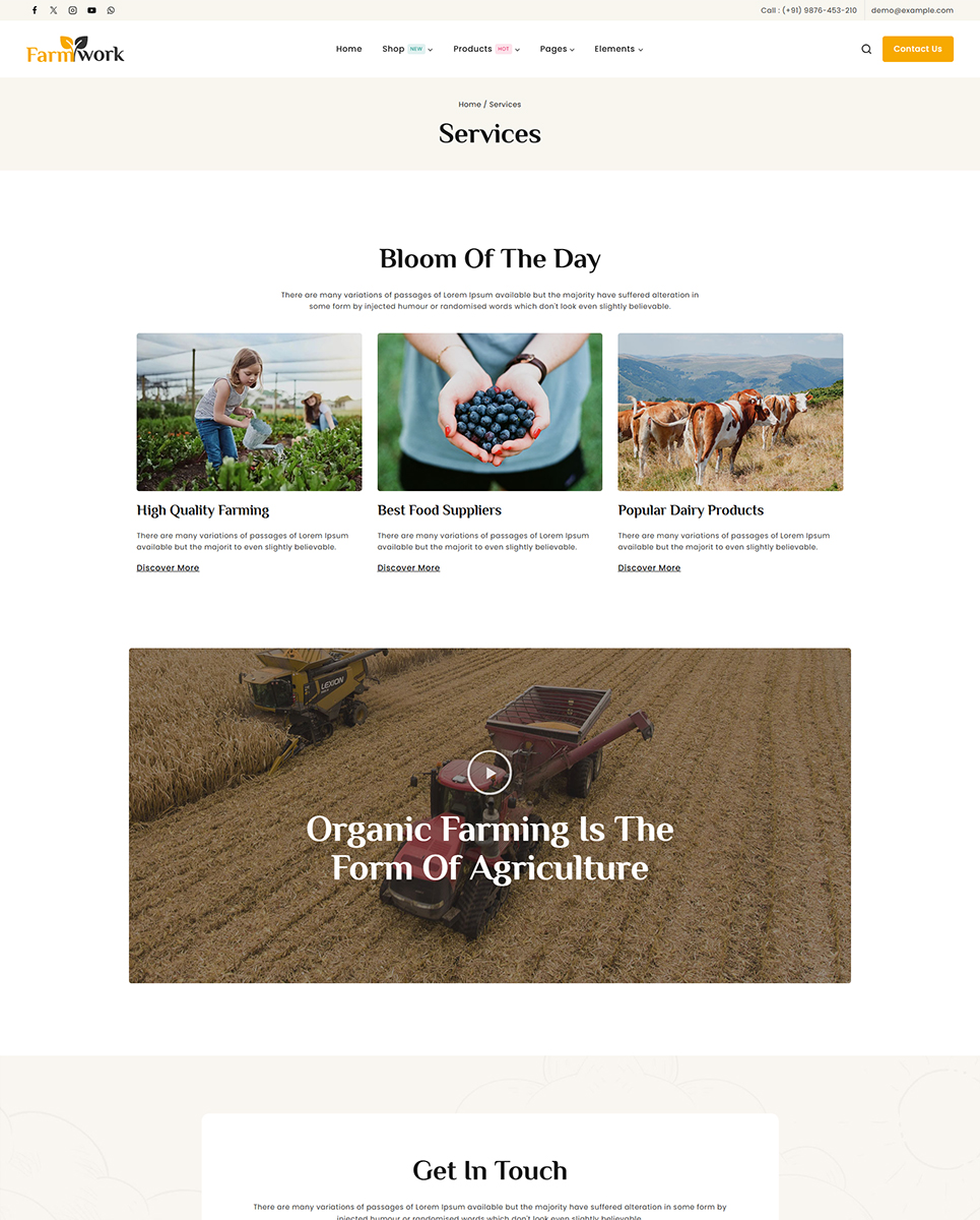 The Farmwork theme boasts a modern and clean design that is fully responsive and mobile-friendly. Your website will look great on any device, from desktop computers to tablets and smartphones, ensuring that your visitors have a seamless browsing experience no matter how they access your site.