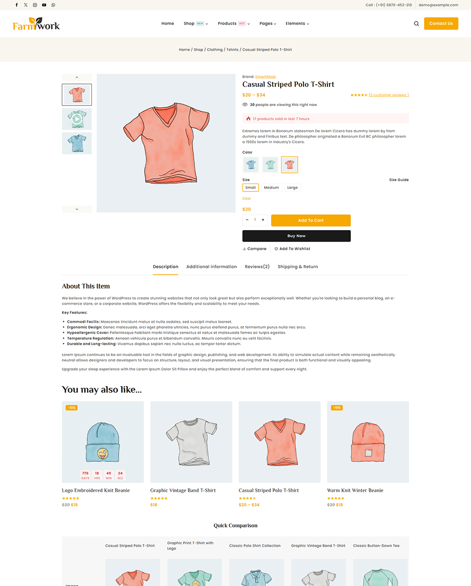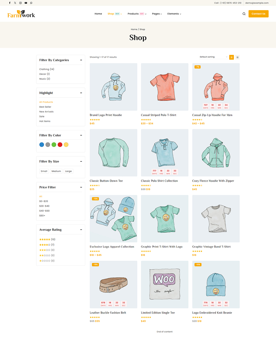 In addition, Farmwork is optimized for SEO to help your website rank higher in search engine results, bringing more organic traffic to your site. The theme is also compatible with popular plugins like WooCommerce, Contact Form 7, and Yoast SEO, giving you even more functionality and customization options.