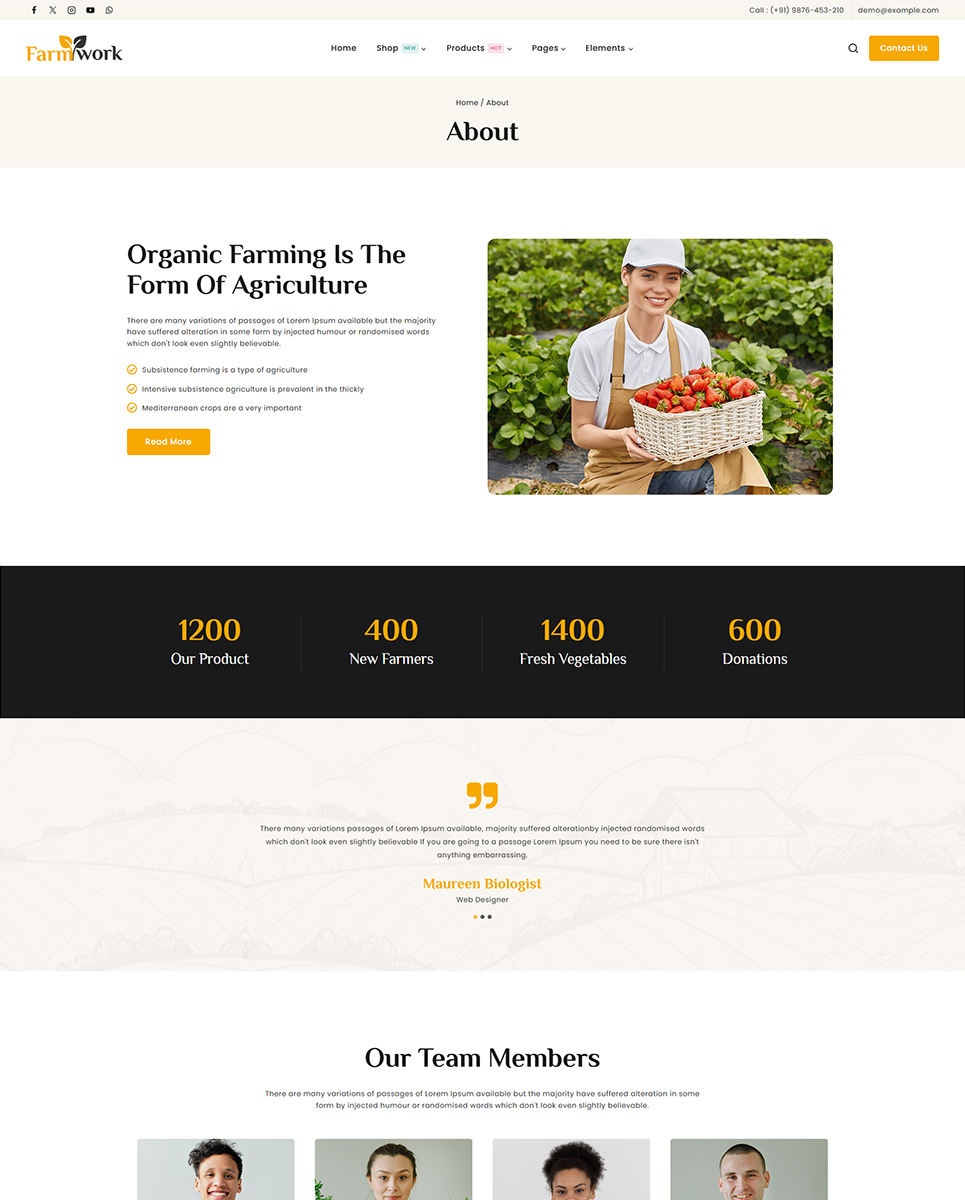 Farmwork – Agriculture and Organic Farming Elementor WordPress Responsive Theme