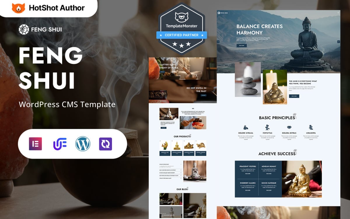 Create a website that promotes peace and harmony with the Feng Shui WordPress Elementor Theme. Perfect for practitioners of Feng Shui, yoga instructors, an