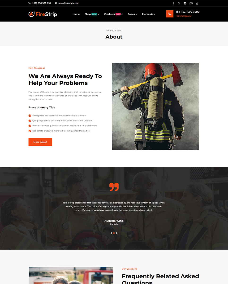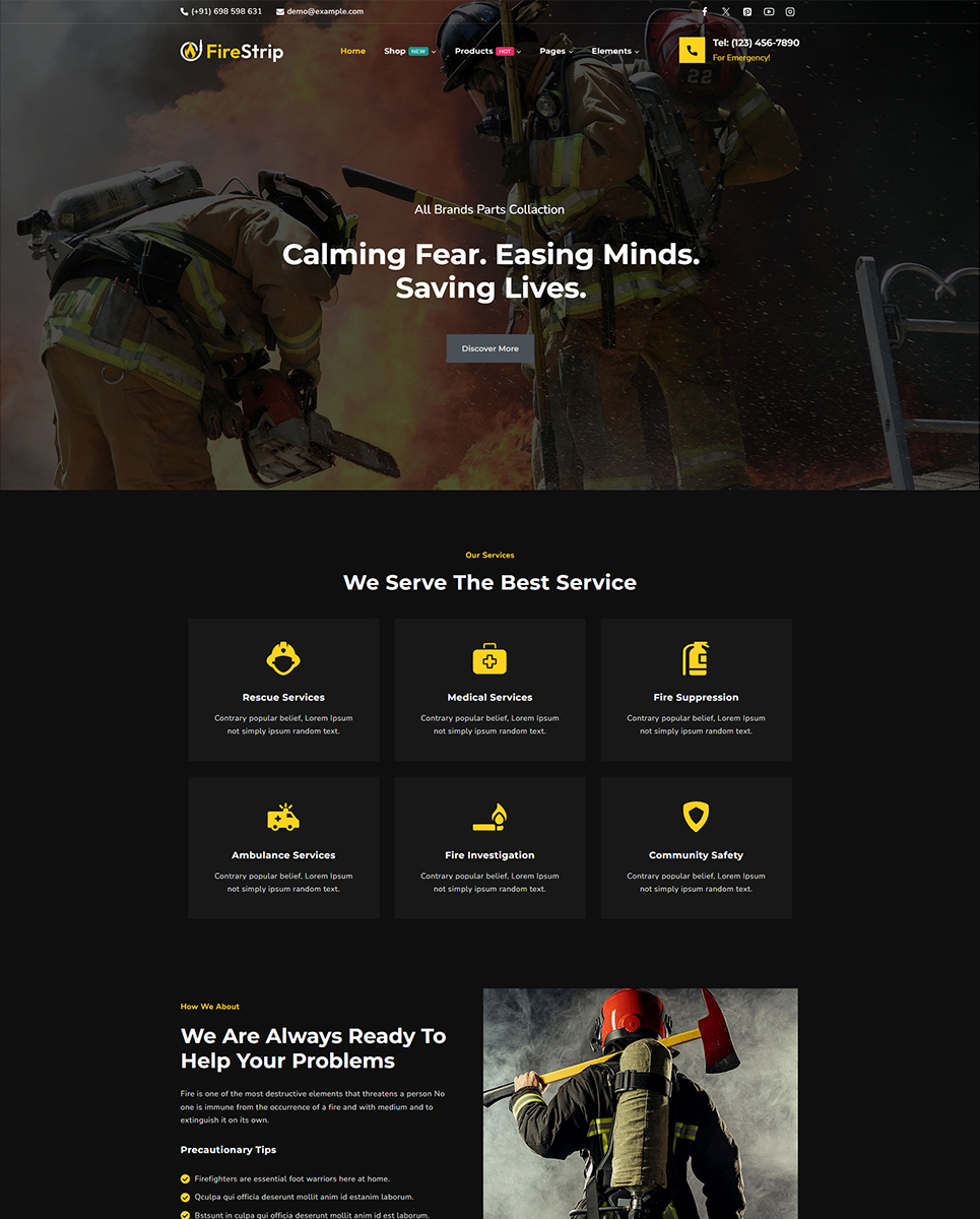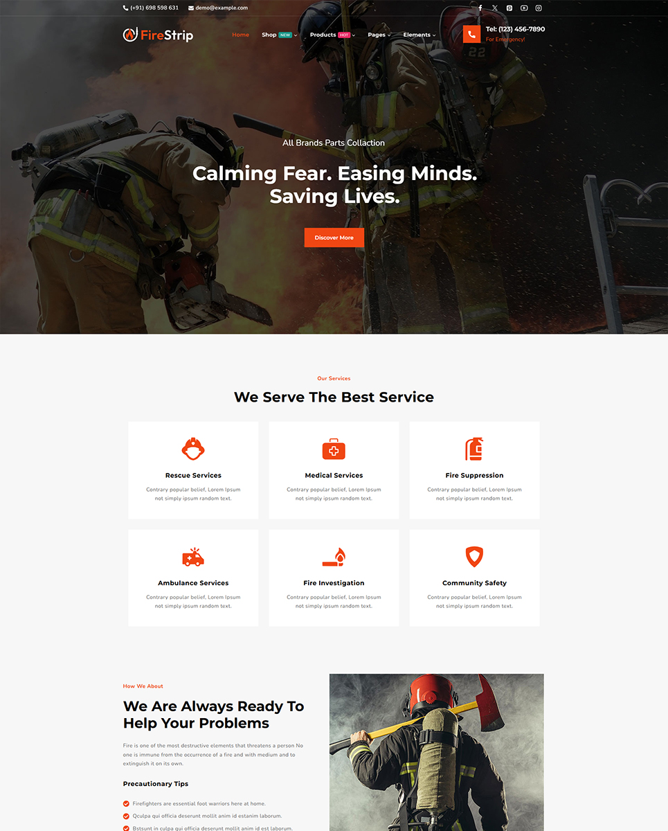 Introducing Firestrip – Fire Department and Security Business Elementor WordPress Responsive Theme, the ultimate solution for any fire department or security business looking to create a professional and modern online presence. With its sleek design and powerful features, Firestrip is the perfect choice for showcasing your services, promoting your team, and attracting new clients.