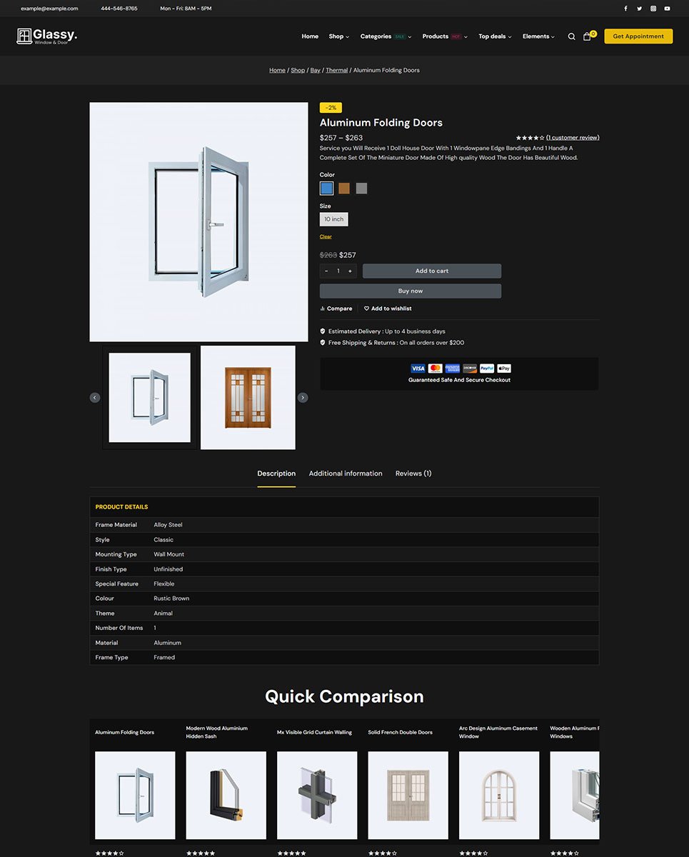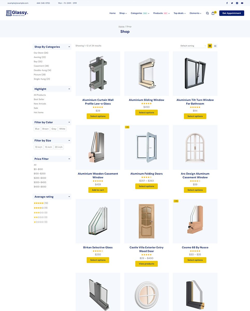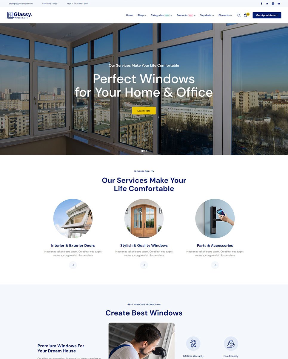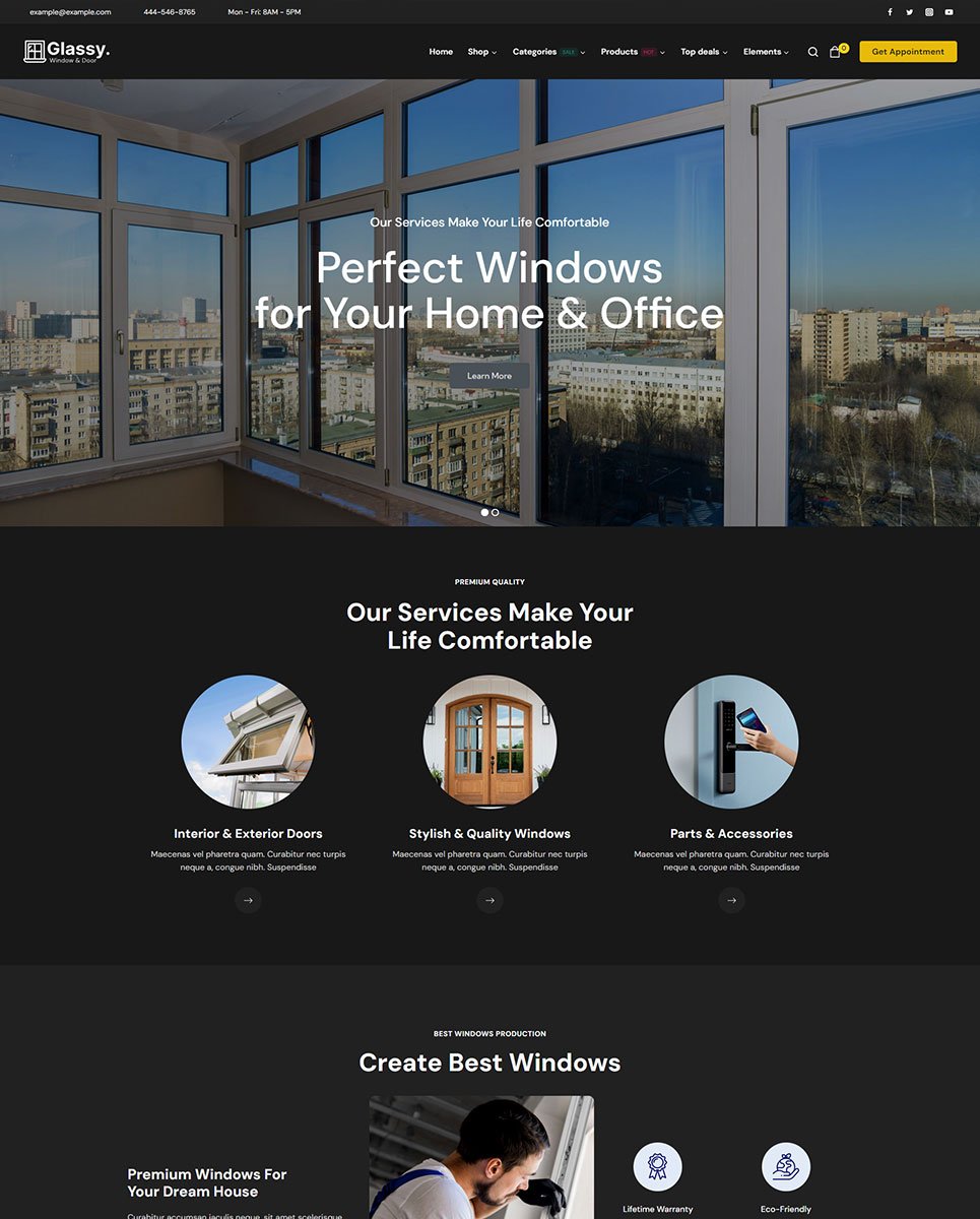 Showcase your windows and doors services with Glassy – a modern and customizable WordPress theme. Perfect for e-commerce and SEO optimization.