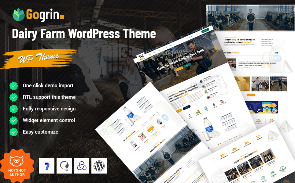 Welcome to Gogrin, the ultimate WordPress theme for dairy farms! Designed specifically for dairy farmers, cheese makers, and milk producers, Gogrin provides a beautiful and functional platform to showcase your products and services online. With its clean design and user-friendly interface, Gogrin is the perfect choice for anyone looking to create a professional website for their dairy farm business.