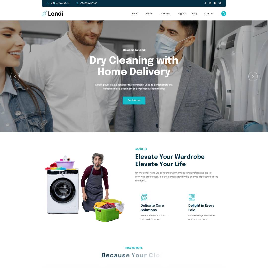 Create a professional website for your laundry service with Londi – Laundry Service & Dry Cleaning WordPress Theme. Easy to customize and packed with advan