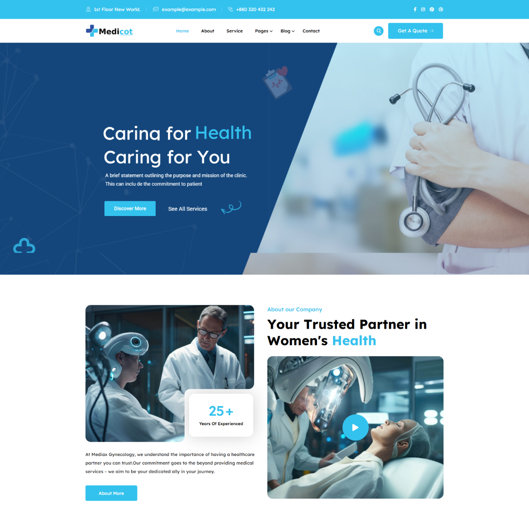 Medicot features a modern and responsive design that adapts seamlessly to different screen sizes and devices. Your website will look great on desktops, laptops, tablets, and smartphones, ensuring a smooth and enjoyable browsing experience for your visitors.
