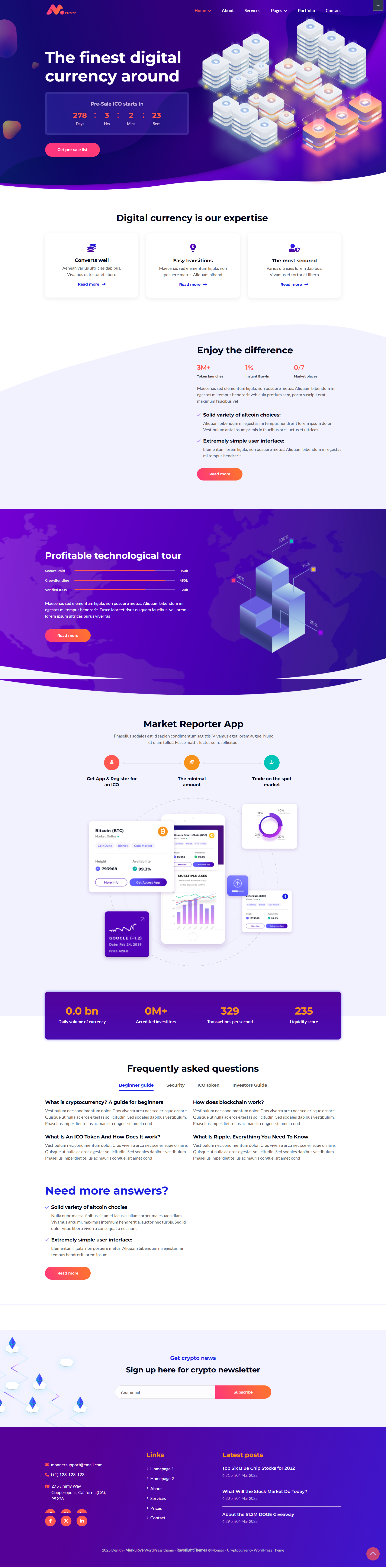 Elevate your cryptocurrency website with Moneer – Cryptocurrency WordPress Theme. Perfect for businesses, bloggers, and investors.