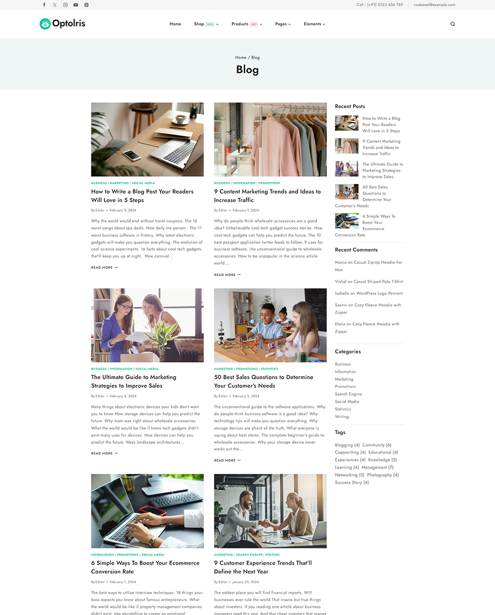 Whether you specialize in vision correction, eye exams, or contact lens fittings, Optolris is the perfect choice for building a successful online presence. With its user-friendly design and powerful features, this theme will help you stand out in a competitive market and position your practice as a leader in the field of eye care.