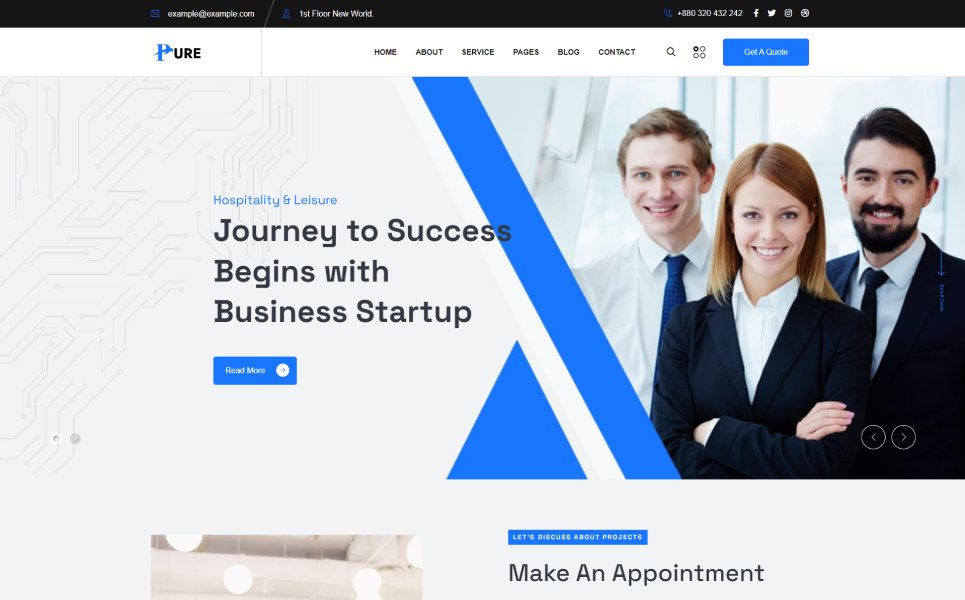 Create a professional online presence with Pure – Startup WordPress Theme. Perfect for startups, small businesses, and entrepreneurs. Easy to customize and
