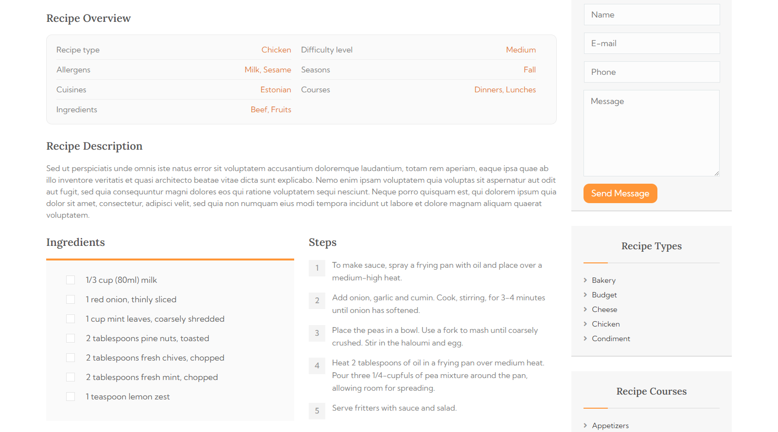 The theme also includes a powerful recipe search functionality, allowing visitors to quickly find the recipes they’re looking for based on keywords, ingredients, or categories. This feature makes it easy for users to explore your collection of recipes and discover new favorites.
