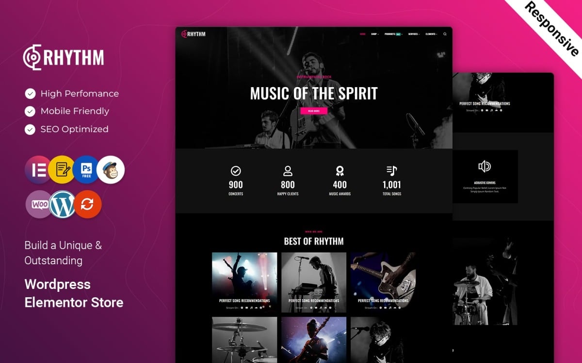 Introducing Rhythm – Music and Band WordPress Elementor Theme, the perfect solution for musicians, bands, DJs, and music enthusiasts looking to create a professional and visually stunning website. With its sleek design and powerful features, Rhythm is sure to impress both your fans and industry professionals.
