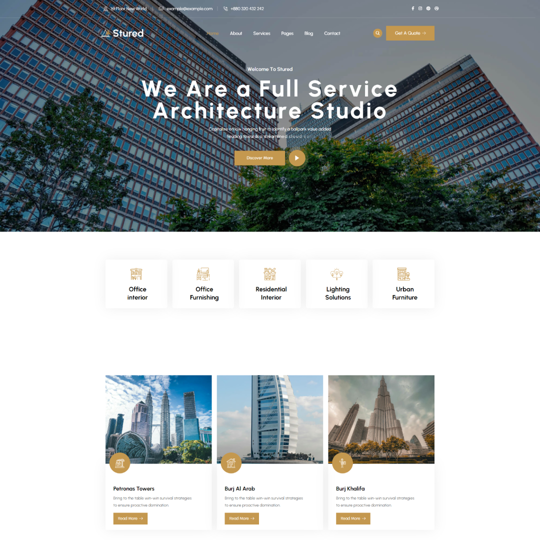 Stured – Architecture Design WordPress Theme is the perfect solution for architects, interior designers, and construction companies looking to showcase the