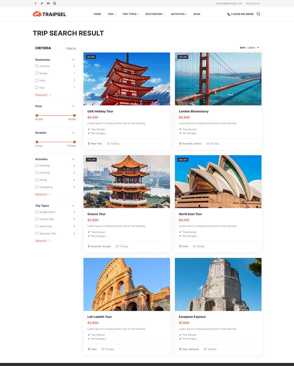 Traipsel features a clean and professional design that is fully customizable using the popular Elementor page builder. With a range of pre-designed templates and blocks, you can easily create stunning pages to showcase your tours, destinations, and travel packages. The theme is fully responsive and mobile-friendly, ensuring that your website looks great on any device.