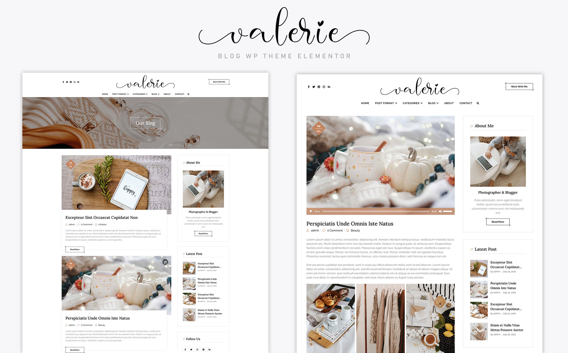 Create a stunning and modern blog with Valerie – a WordPress theme designed for bloggers who want to make a statement. Fully compatible with Elementor, eas
