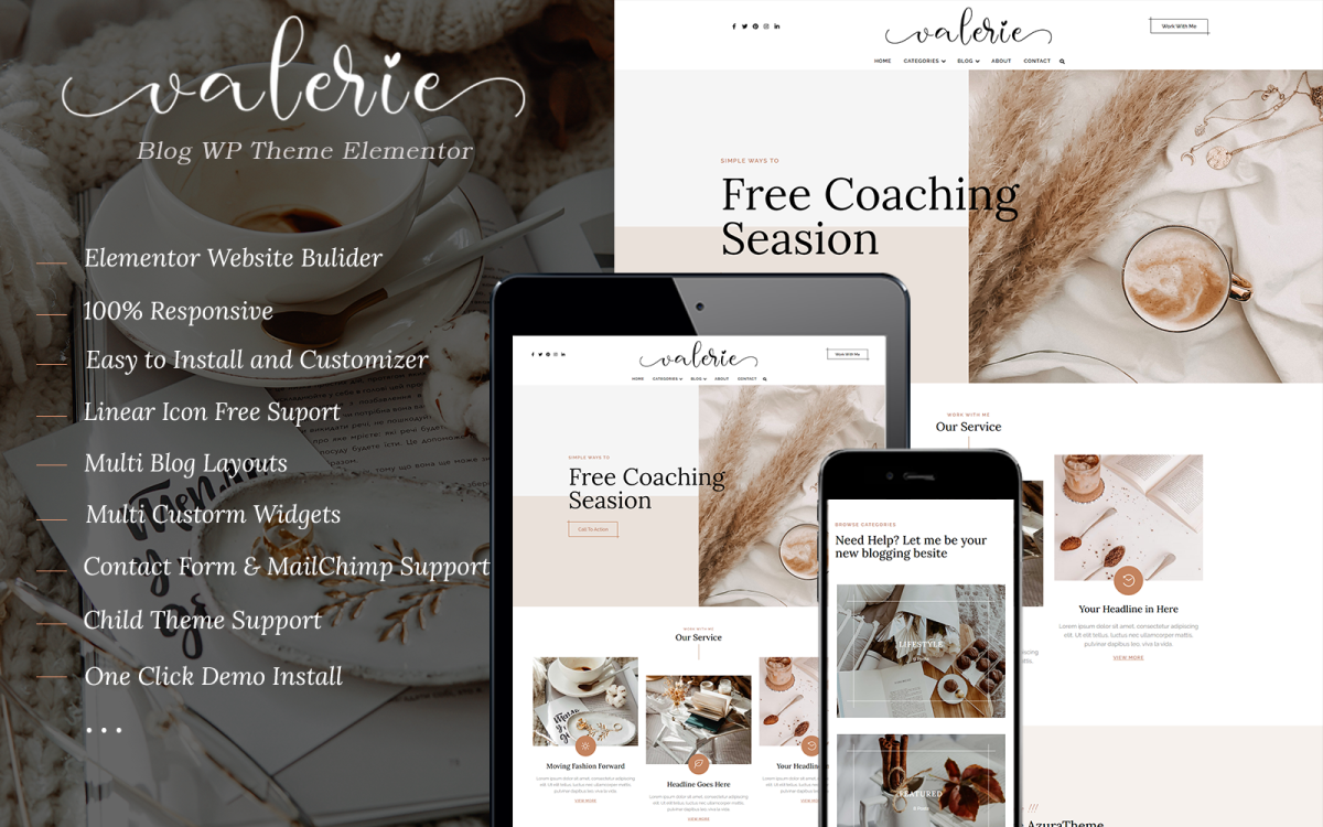 Valerie comes packed with features that will help you take your blog to the next level. The theme is fully compatible with Elementor, the popular drag-and-drop page builder, making it easy to create custom layouts without any coding knowledge. You can choose from a variety of pre-designed templates and customize them to suit your style.