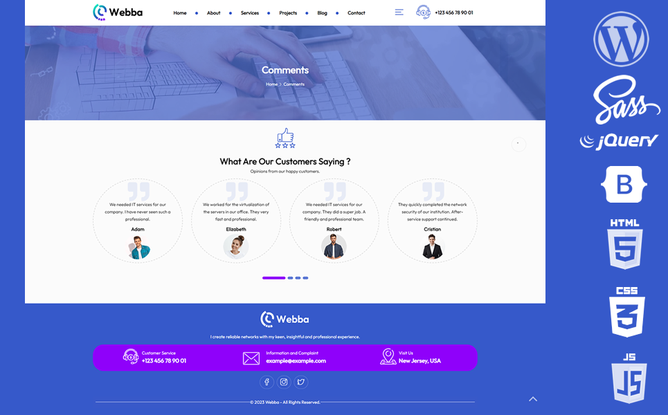 Showcase your best work with Webba’s built-in portfolio functionality. Display your projects in a clean and organized grid layout, complete with filtering options to help visitors easily navigate through your portfolio. Each project can be accompanied by a detailed description, images, and links to the live website, allowing potential clients to get a comprehensive view of your capabilities.